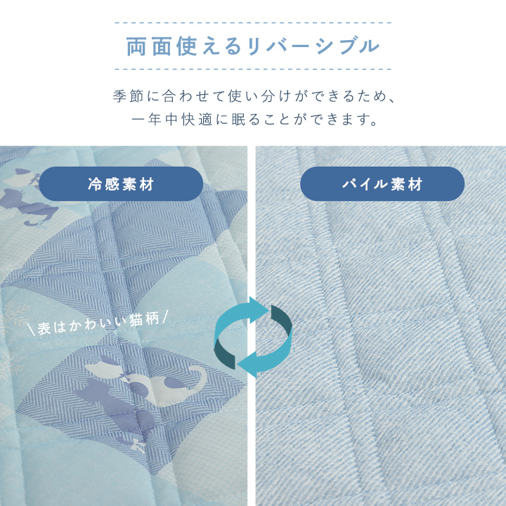 ■裏生地はパイル生地で両面使用でき、年間ご使用頂けるリバーシブルタイプ。
