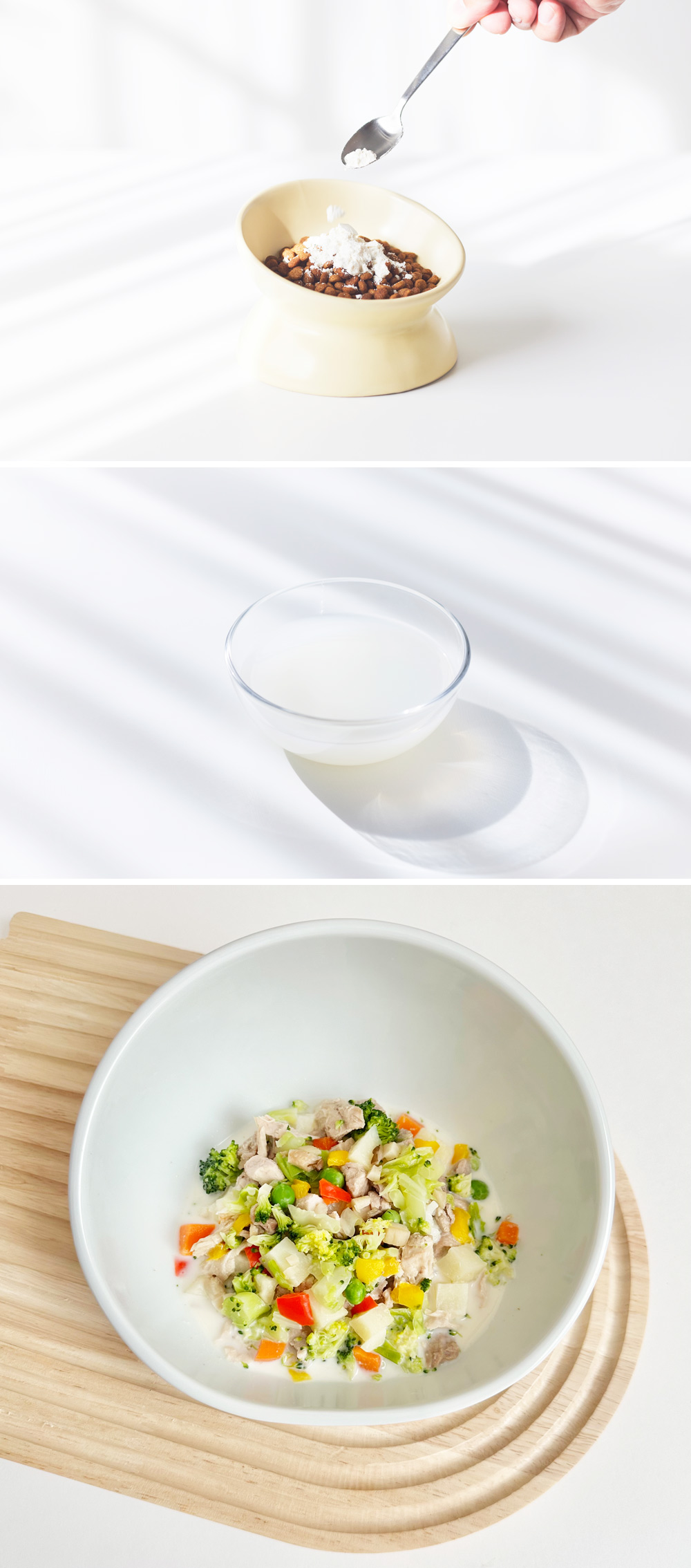 ふやかしたフードと混ぜて与えることもでき、食欲が低下しがちなシニア犬のサポート食にもなります。