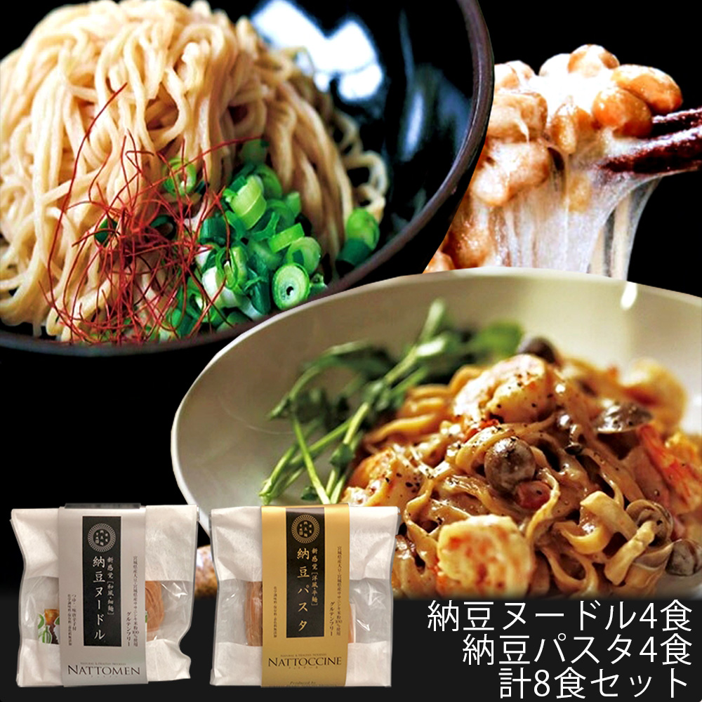納豆ヌードル 4食 納豆パスタ 4食 計8食セット 宮城県産 契約栽培 大豆 無添加納豆麺 グルテンフリー 早ゆで グリーンパール納豆本舗 GPNNNP-W8S 【代引不可】