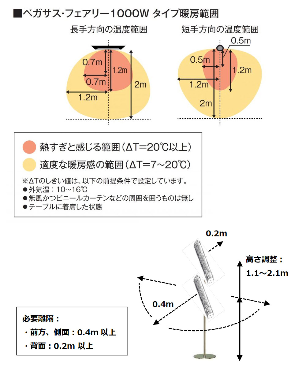 1000Wタイプは、おおよそ4人掛けテーブル1卓分をカバーします。
