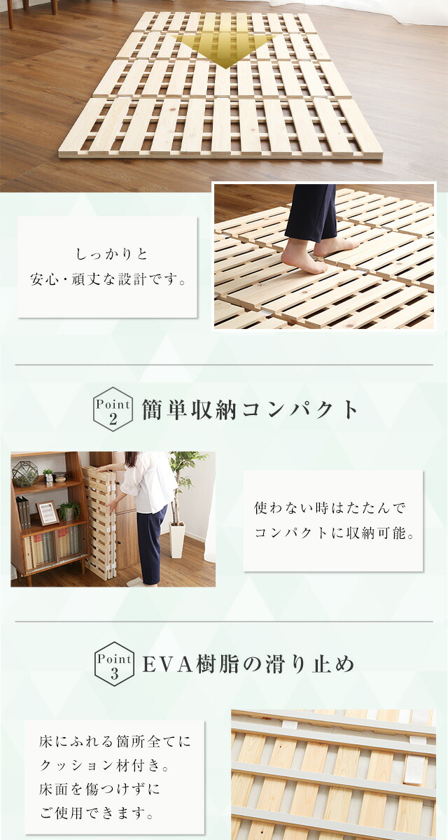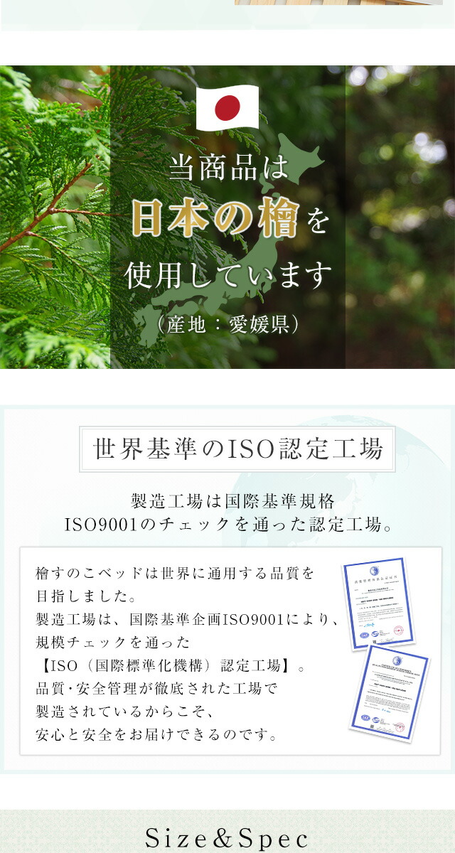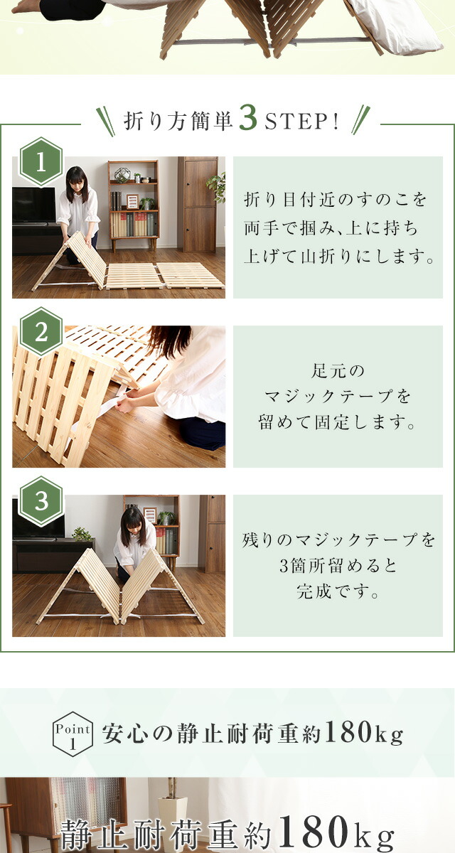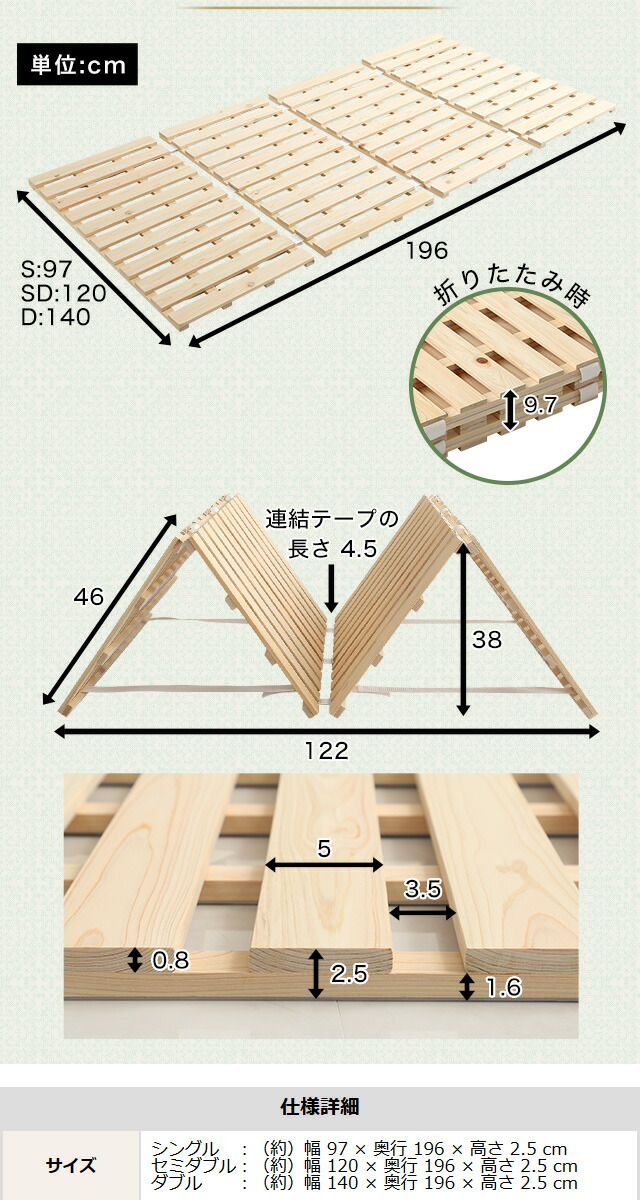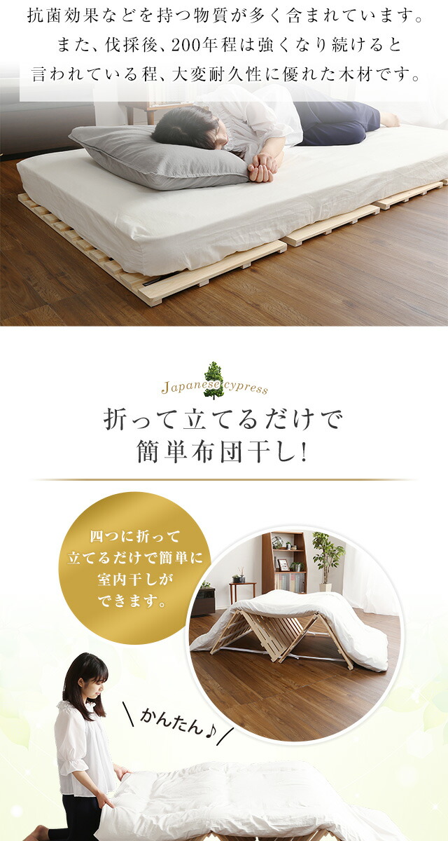 すのこベッド四つ折り式 セミダブル 檜仕様 涼風 布団が干せる すのこベッド 四つ折りタイプすのこ 折りたたみ式 折りたたみベッド 代引不可同梱不可[ナチュラル]