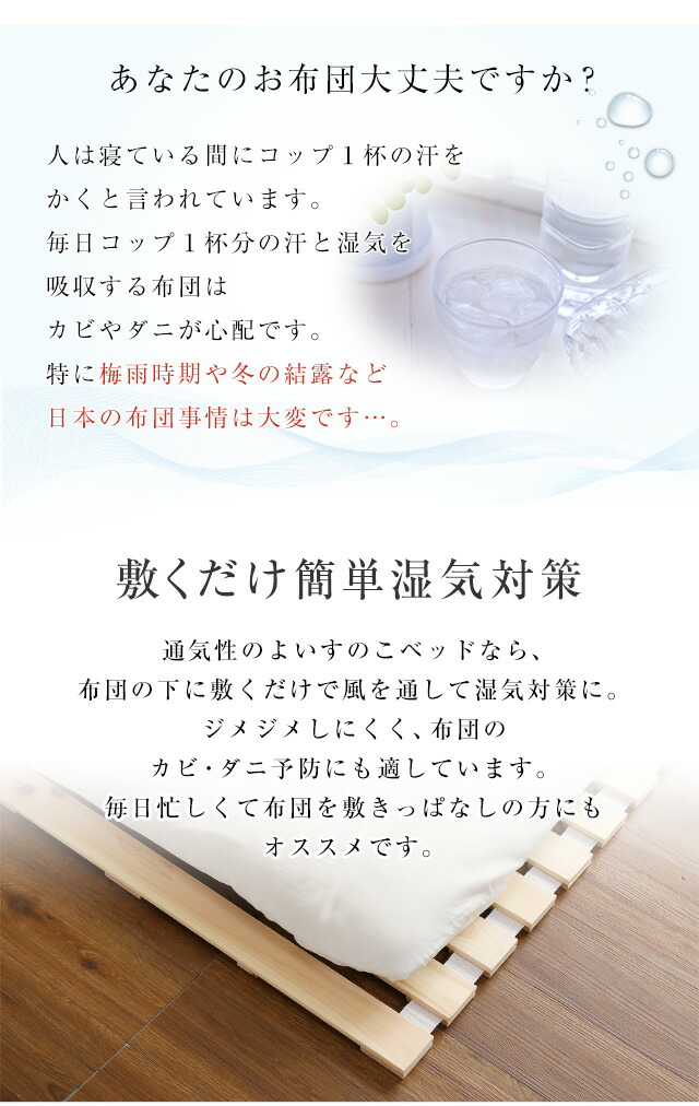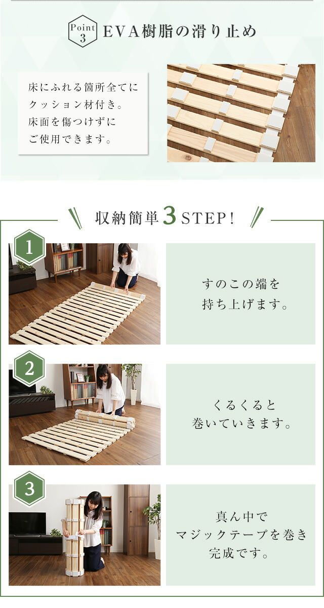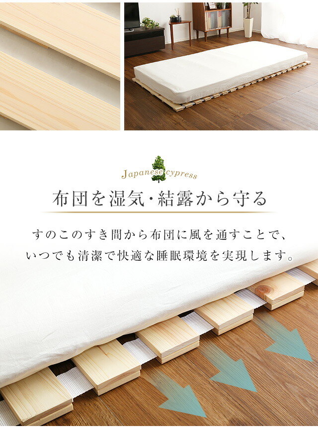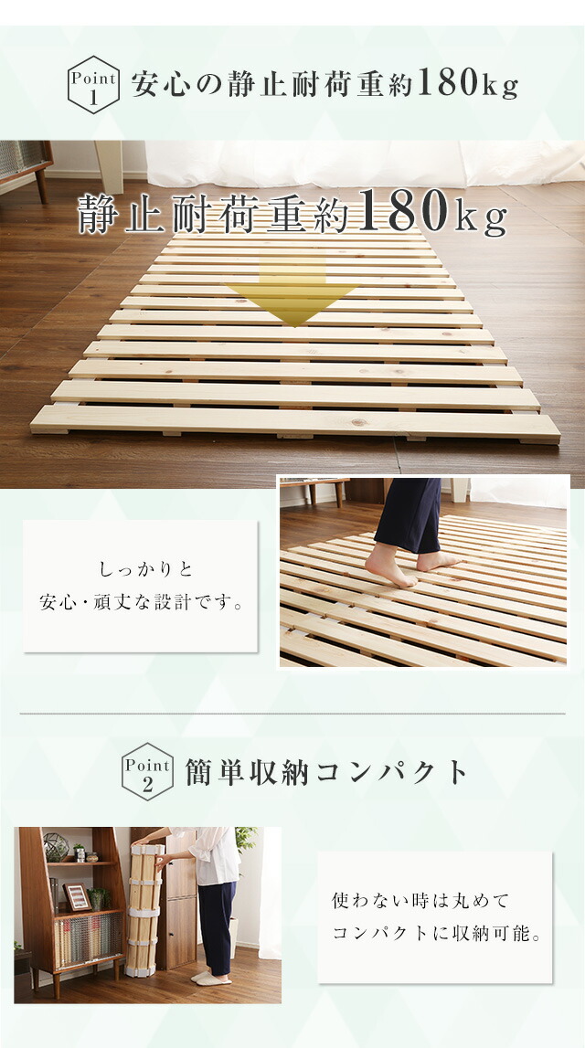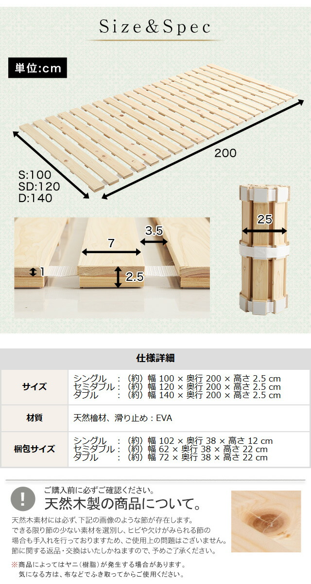 すのこベッドロール式 セミダブル 檜仕様 涼風 ロールタイプすのこ ロール式 すのこベッド 折りたたみ式 折りたたみベッド 代引不可同梱不可[ナチュラル]