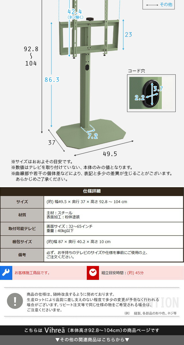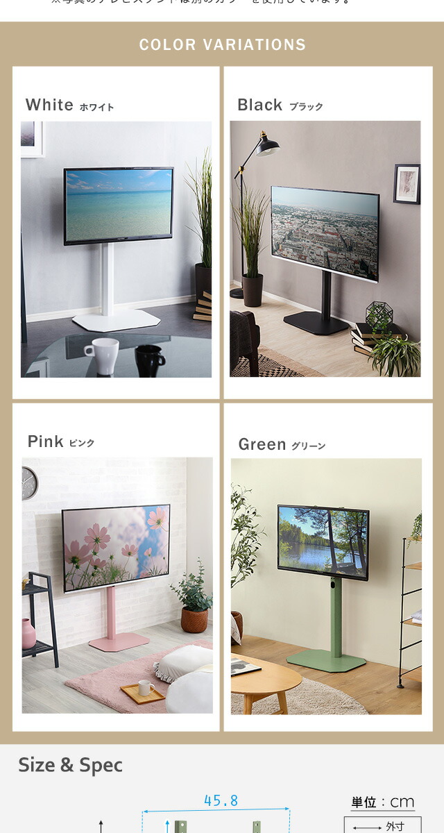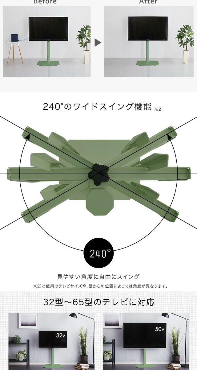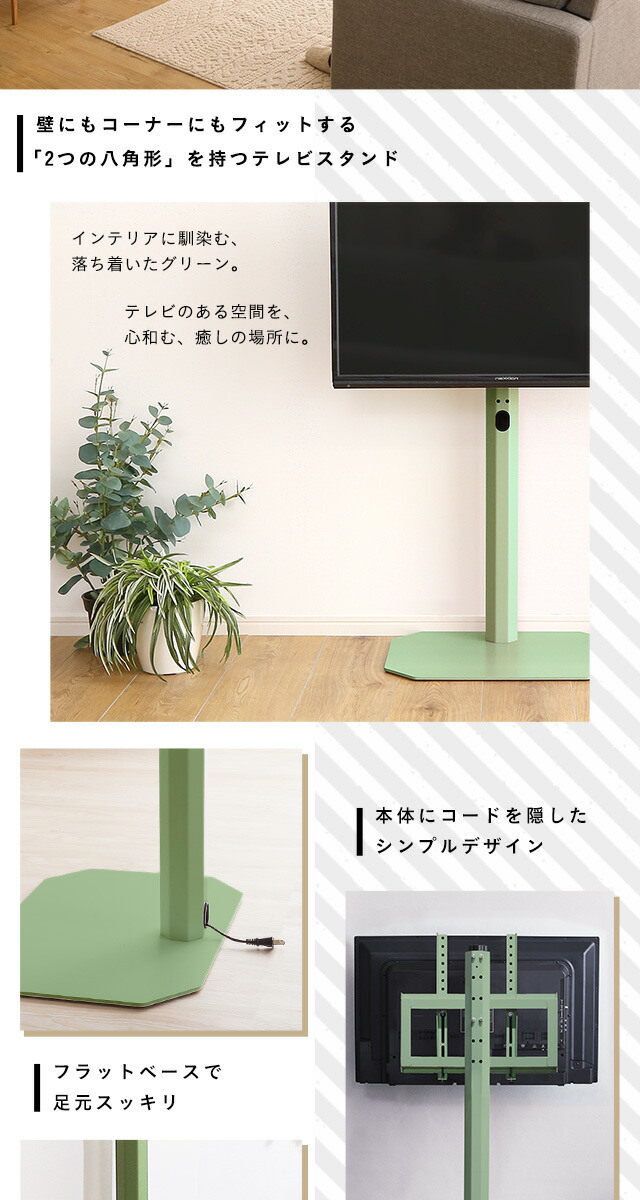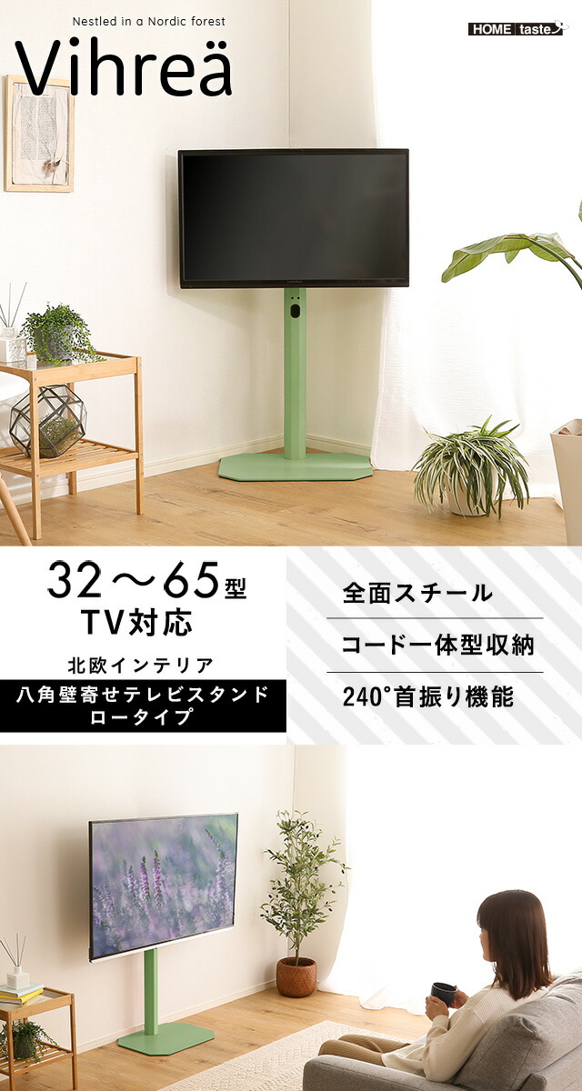 八角壁寄せ テレビスタンド ロータイプ 首振り 32~65型対応 【Vihrea -ヴィフレア-】 震度7試験クリア 北欧インテリア 壁寄せテレビスタンド テレビ台 壁寄せテレビ台 TVスタンド 背面収納 自立式 首ふり おしゃれ 【代引不可】[ブラック]