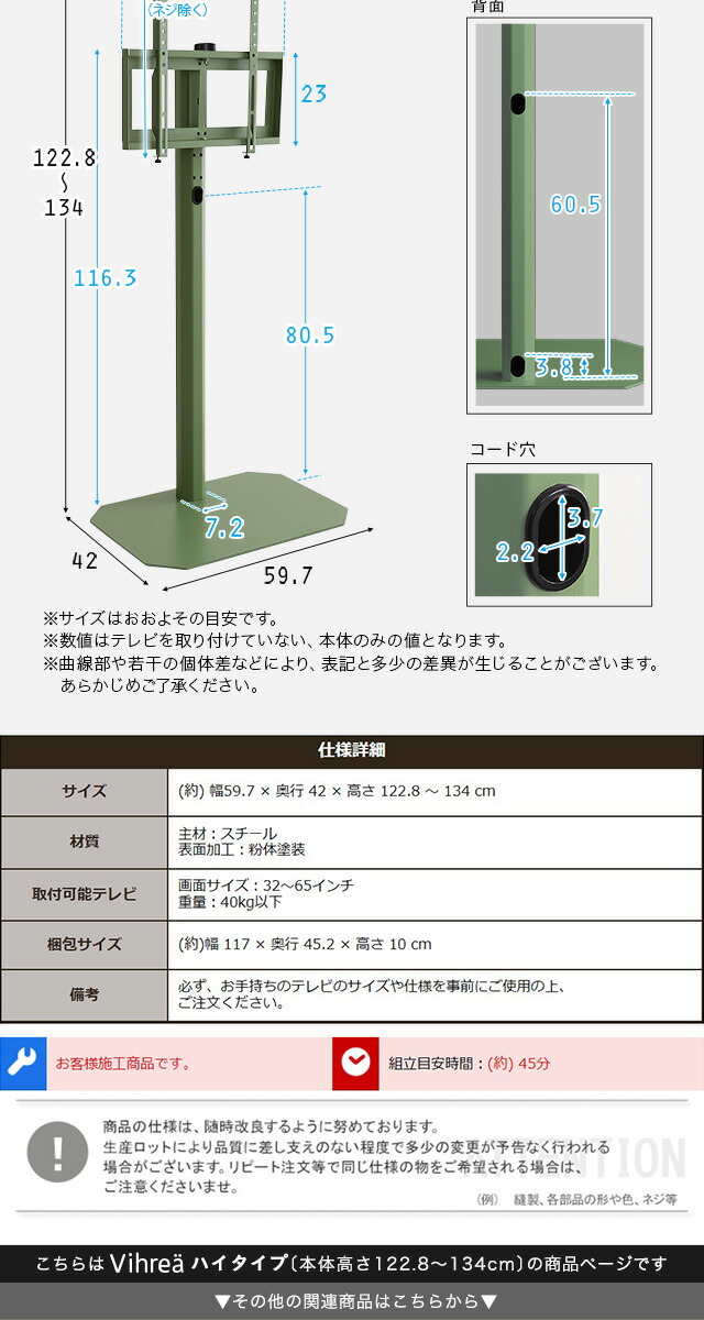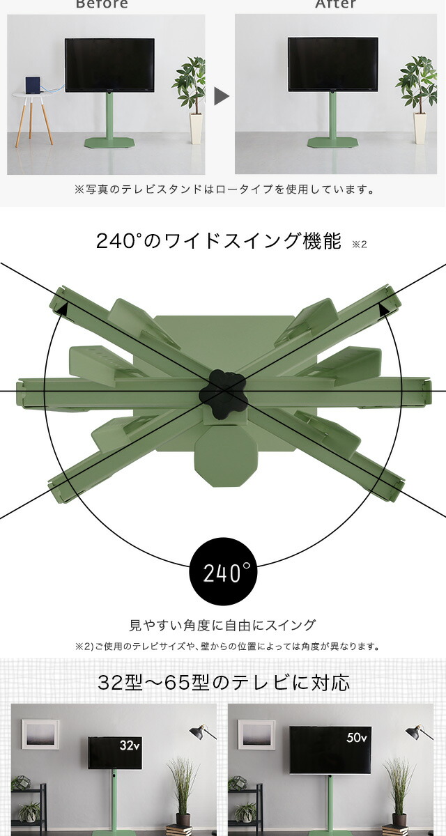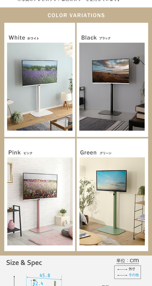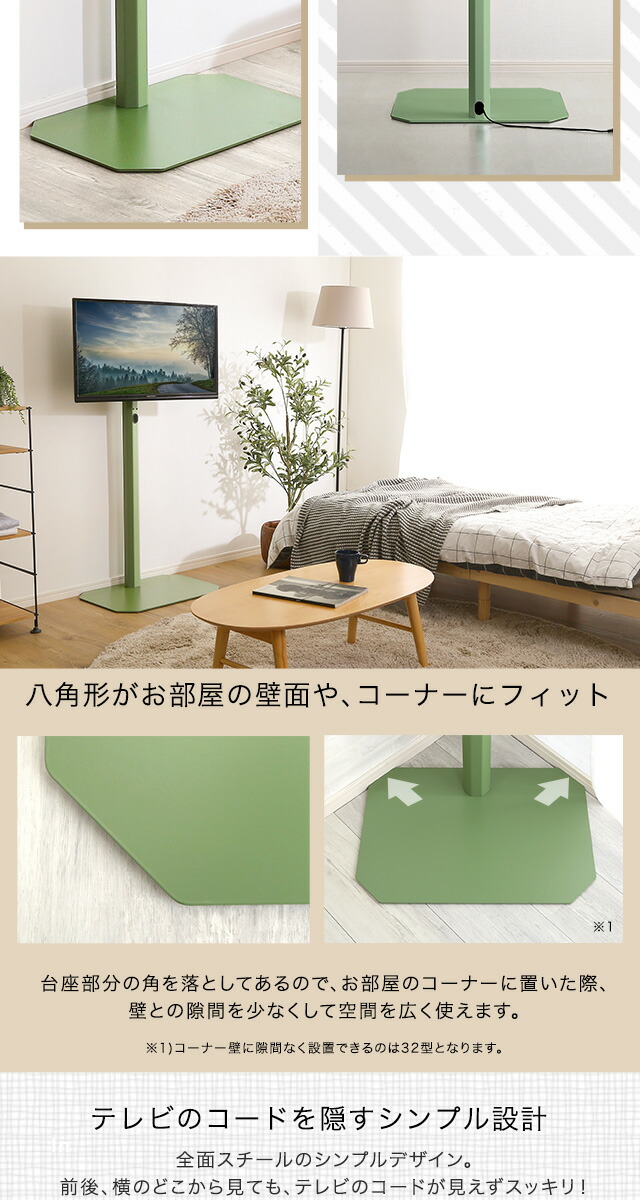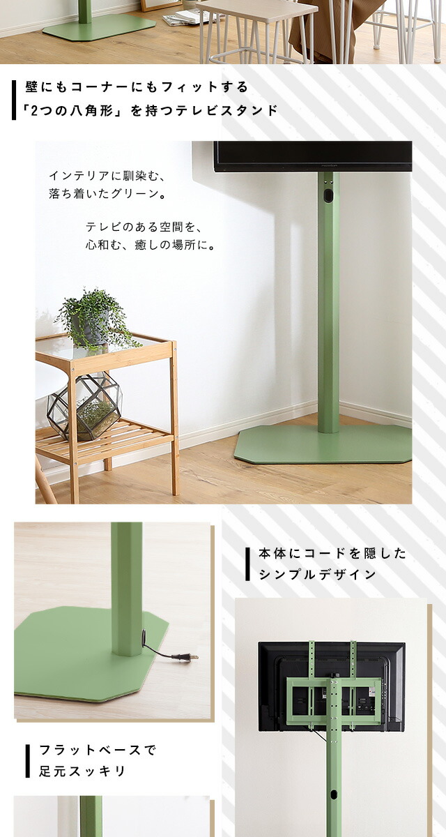八角壁寄せ テレビスタンド ハイタイプ 首振り 32~65型対応 【Vihrea -ヴィフレア-】 震度7試験クリア 北欧インテリア 壁寄せテレビスタンド テレビ台 壁寄せテレビ台 TVスタンド 背面収納 自立式 首ふり おしゃれ 【代引不可】[ピンク]