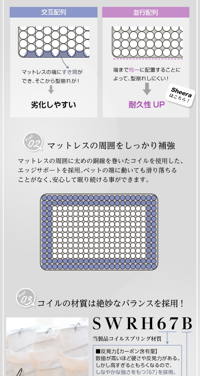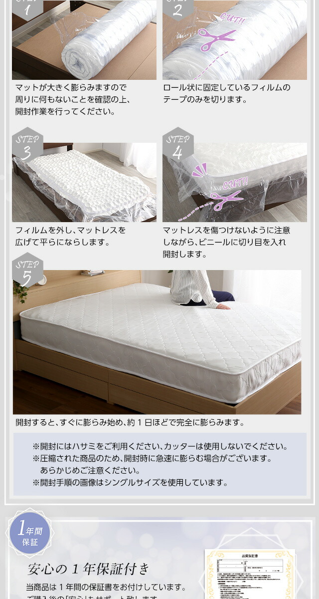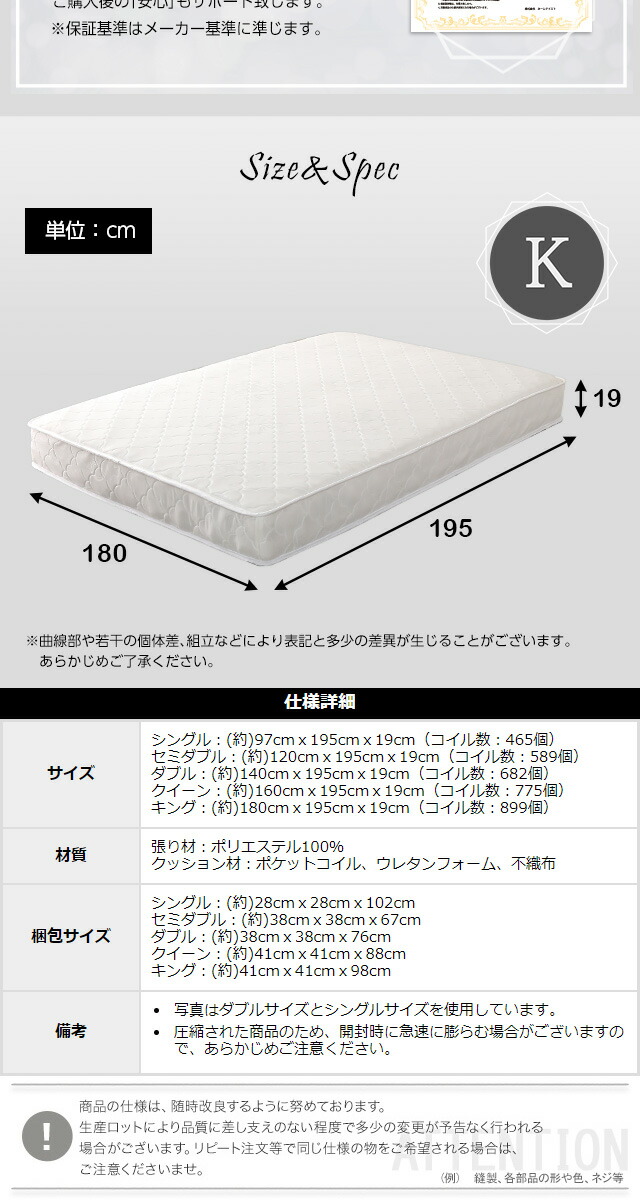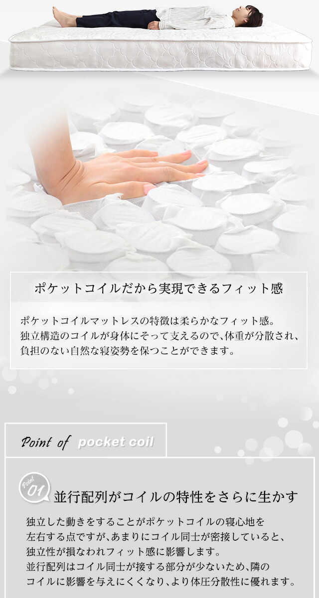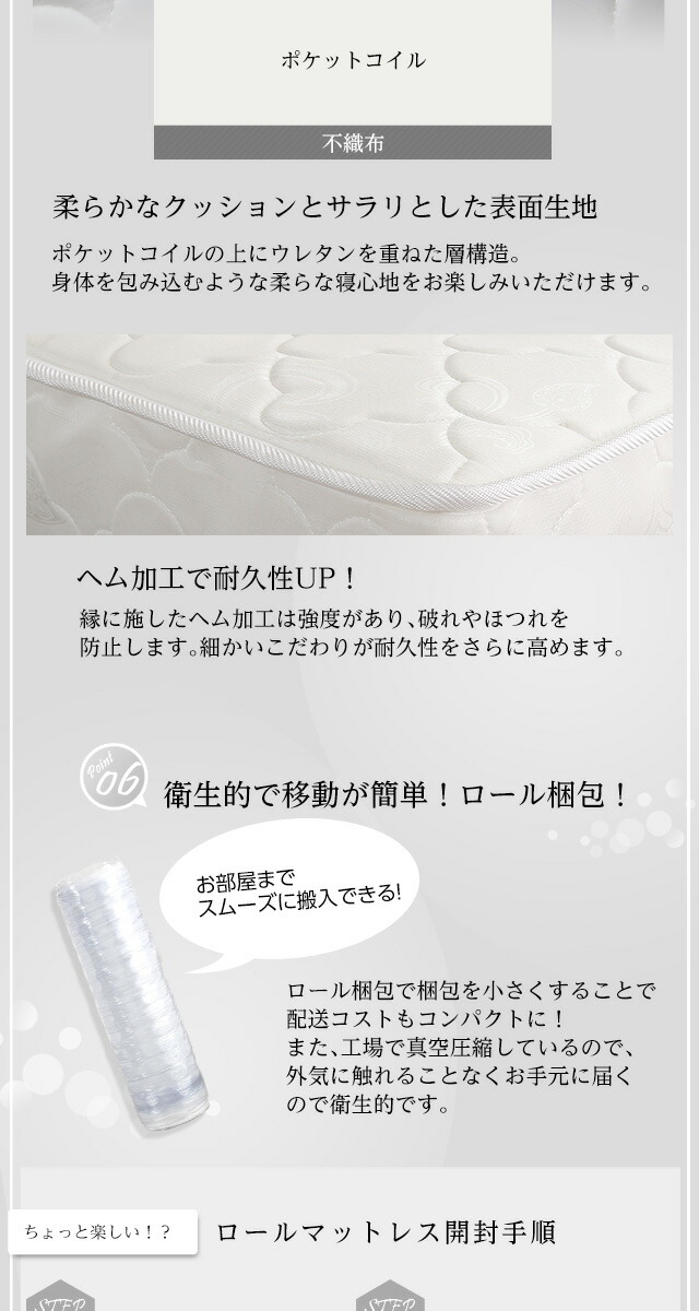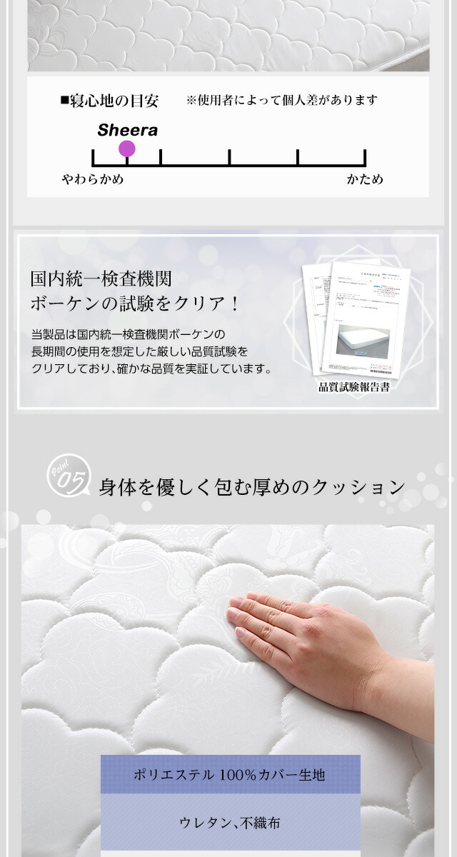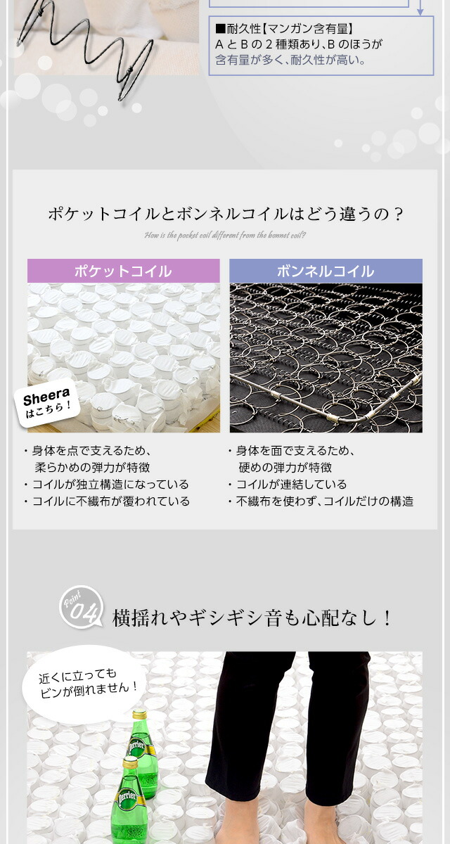 ロール梱包片面仕様 ポケットコイルマットレス Sheera-シェエラ- キングサイズ マットレス 1年保証 ベッドマット マット 敷き布団 敷布団 寝具 代引/同梱不可[ホワイト]