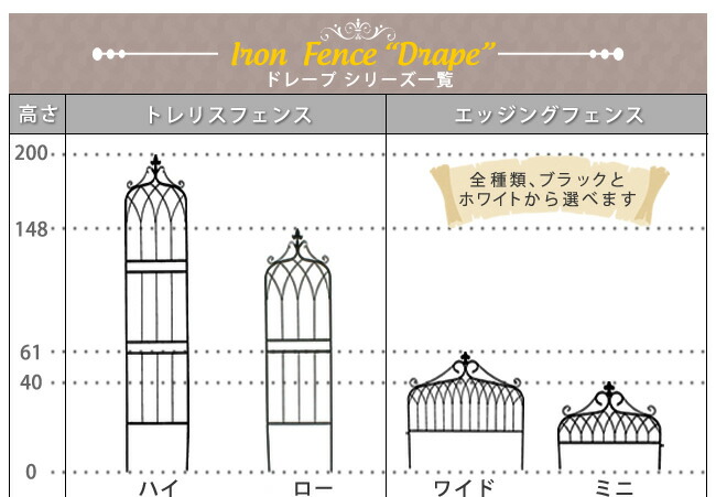 【アイアンフェンス148 ロータイプ "drape"(ドレープ)2枚組】