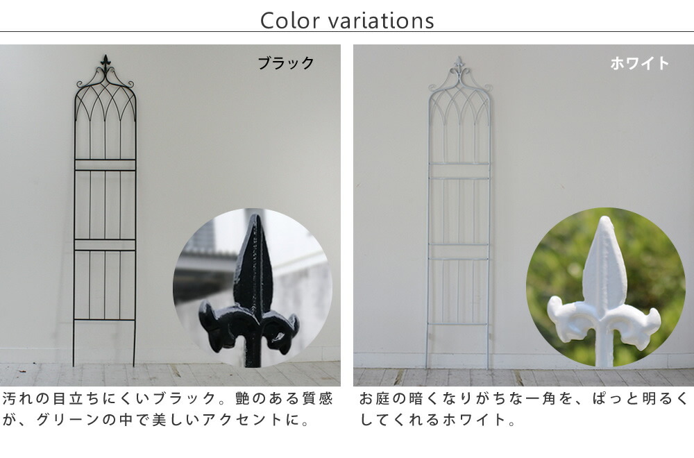 アイアンは丈夫で耐久性があり、薔薇やクレマチス、アイビーなどの誘引がしやすいだけでなく、装飾品のように美しいので、お庭にあるだけで素敵ですね。