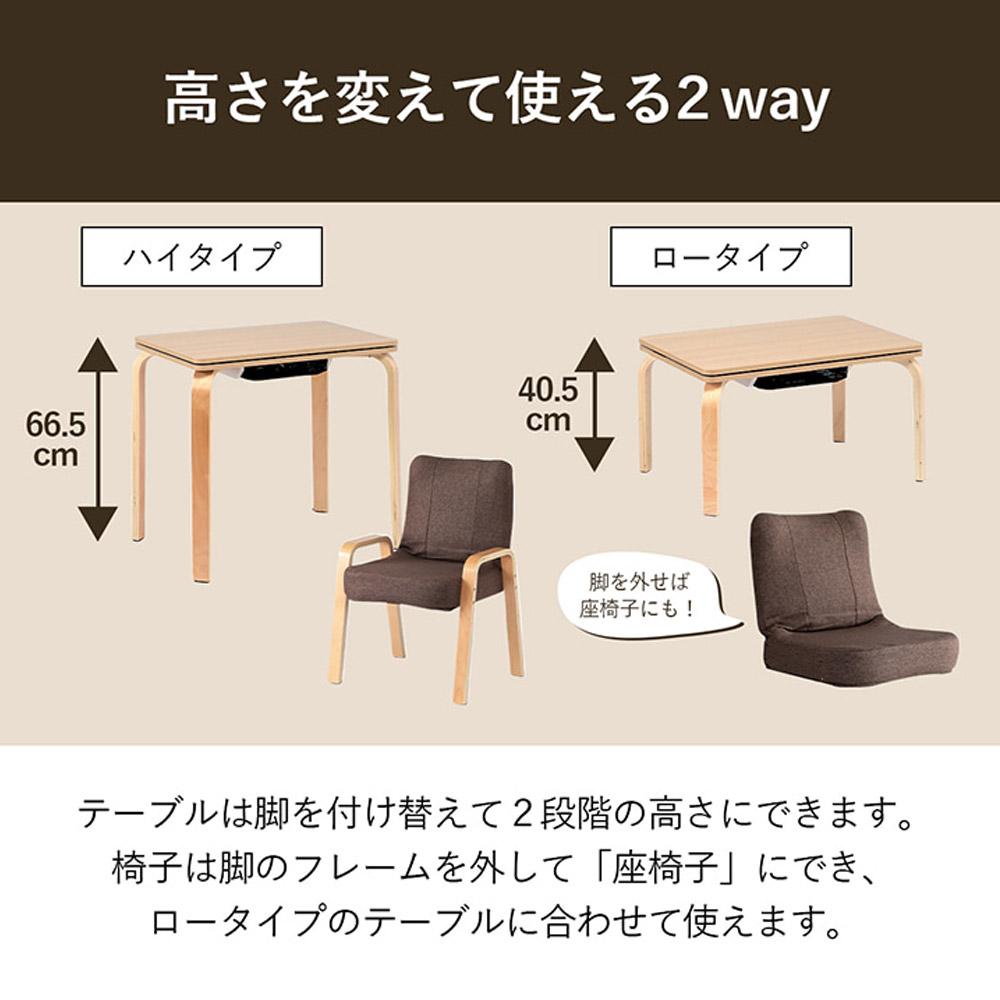 2way こたつテーブル・椅子・掛け布団3点セット 高さ変更 2way メトロ製ヒーター 3点セット 天板リバーシブル コンパクト バイデ 1380000025738 【代引不可】【同梱不可】