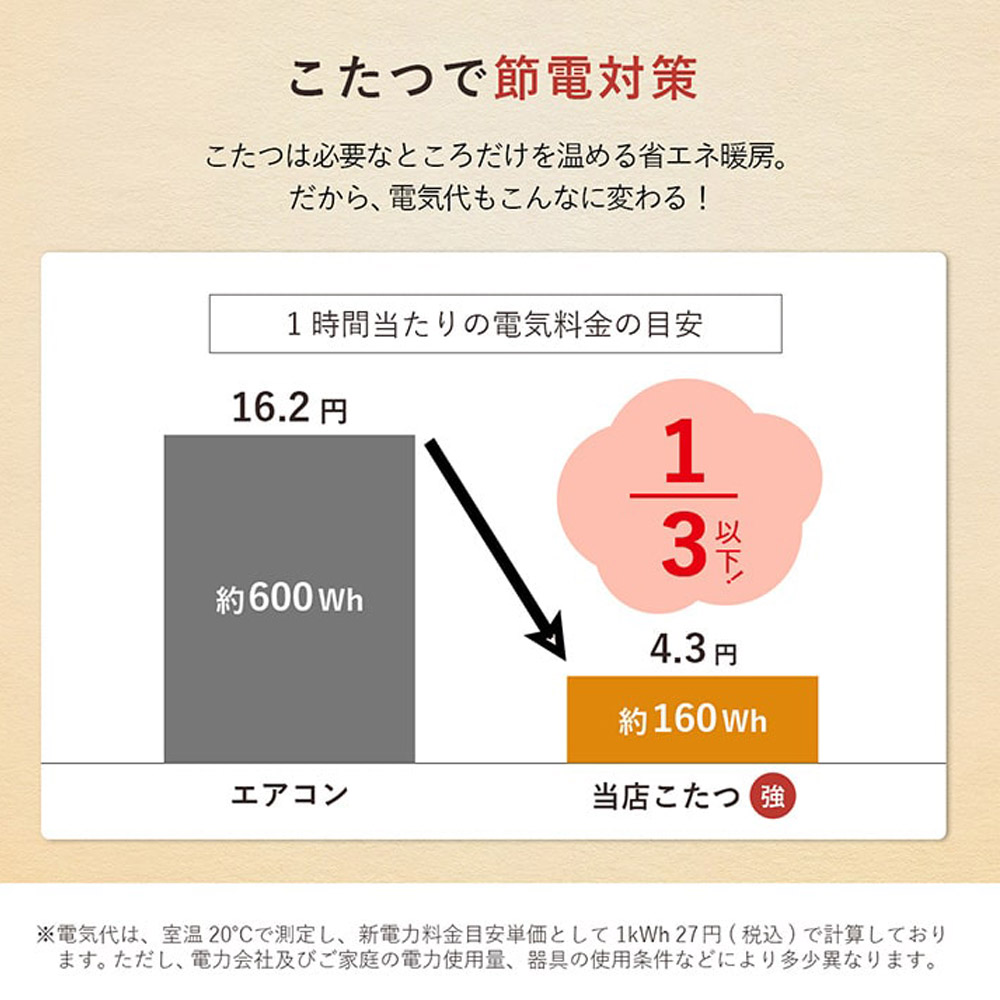 1、省エネルギー、こたつは必要なところだけを暖める省エネルギー暖房器具です。