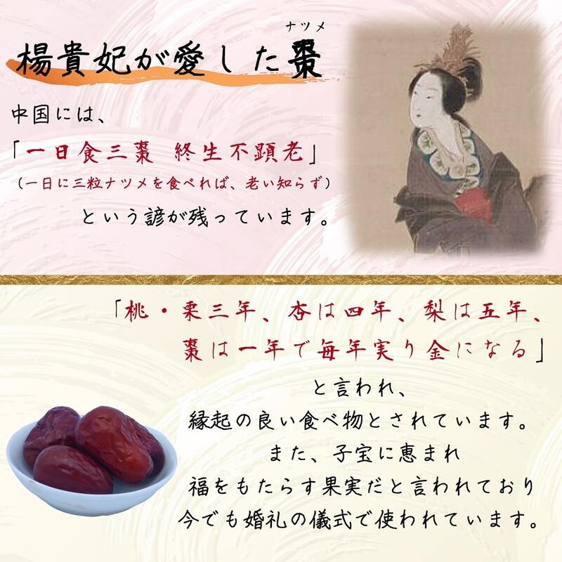 実は、漢方の煎じ薬で使用する大きなナツメである「大棗(たいそう)」と同じものを採用しています。