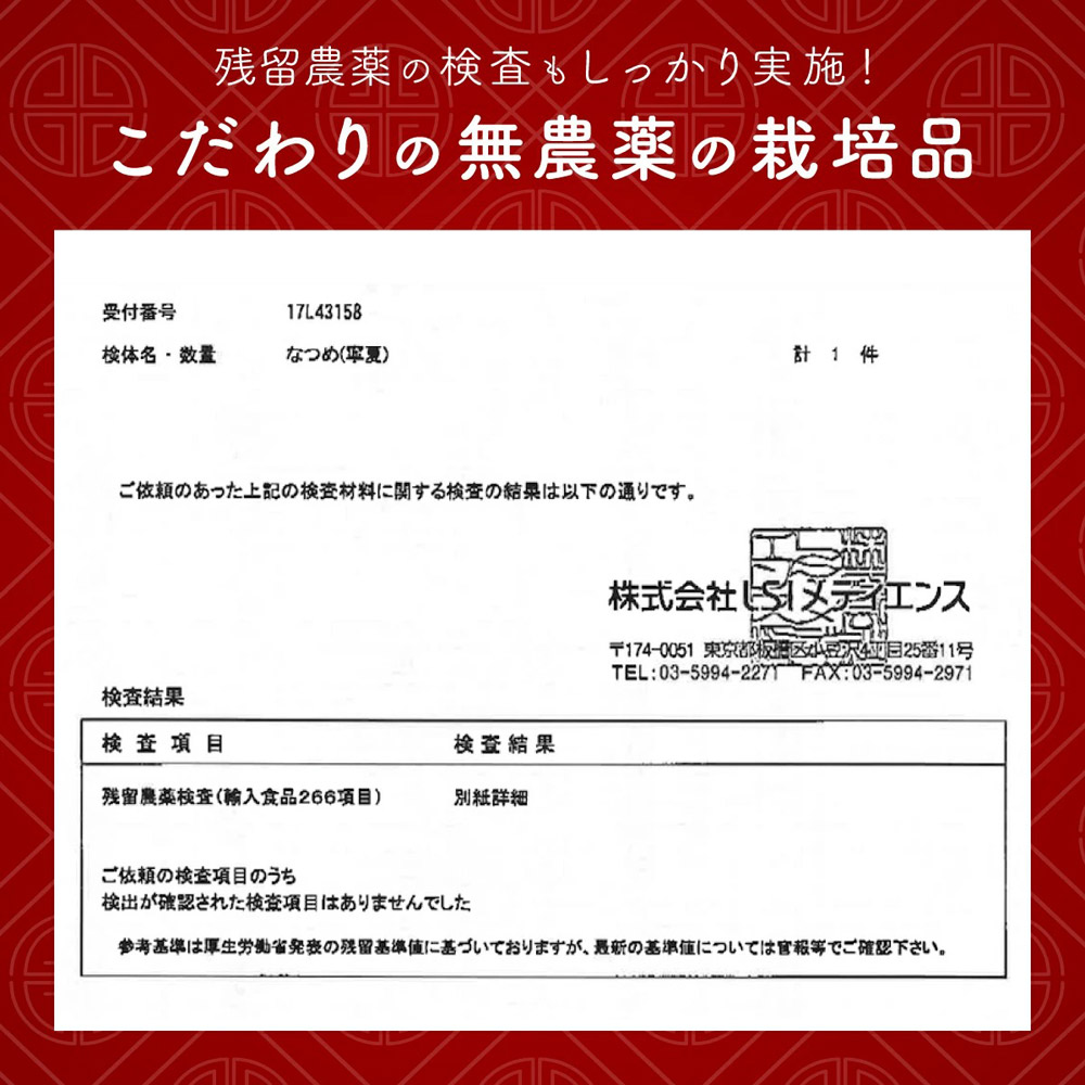 日本へ輸入した後にも、ナツメの残留農薬検査を行ってます。