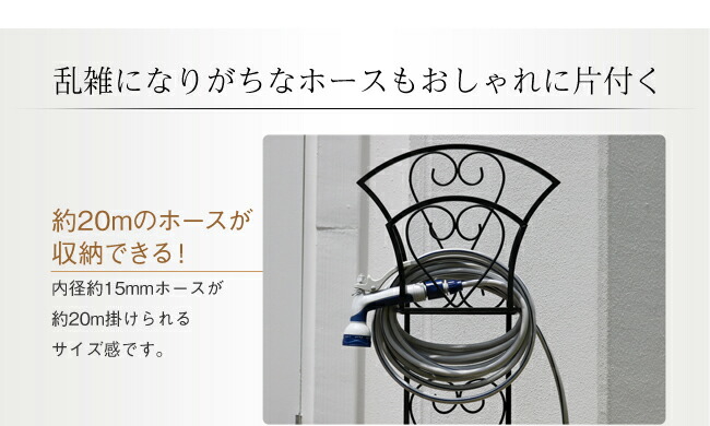 乱雑になりがちなホースを壁にまとめておける、壁掛け式のホースホルダー。