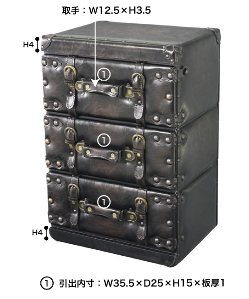 レトロなトランクをモチーフにした3段式チェスト レトロトランク風 ミニチェスト3D IW-873【代引不可】