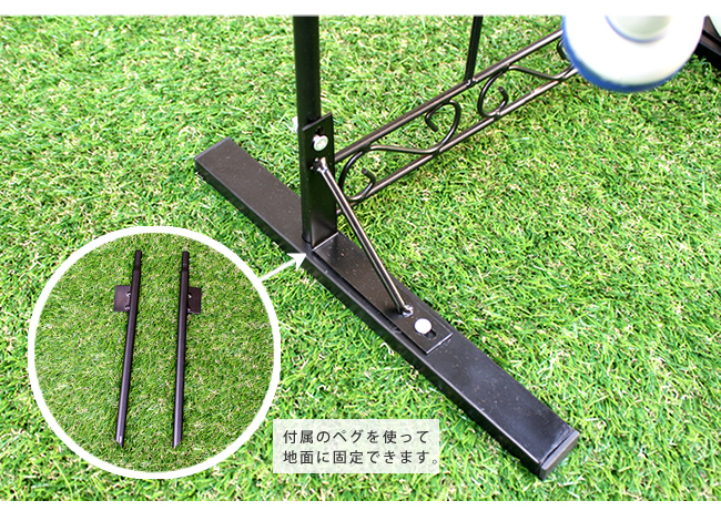 ※基本的に埋め込み部分をしっかり埋め込んで頂ければ自立しますが、柔らかすぎる地面などでは倒れる恐れがありますので、お客様自身で固定いただくか、ご使用をお避けください。