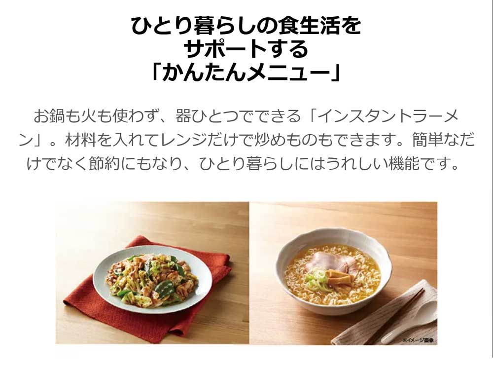 検索キーワード: 電子レンジ 単機能 ヘルツフリー 50Hz 60Hz フラット庫内 カンタンメニュー マイコン式 前開き コンビニ弁当 幅広設計 四角い弁当 OK 一人暮らし 1人暮らし ひとり暮らし 新生活 単身赴任 お手入れラクラク オートメニュー 自炊
