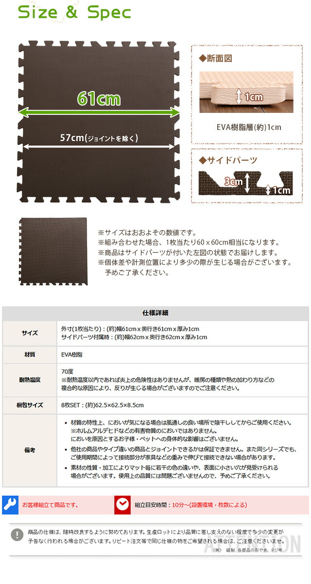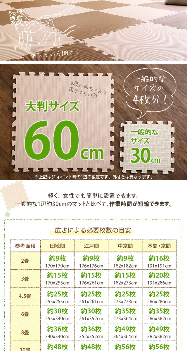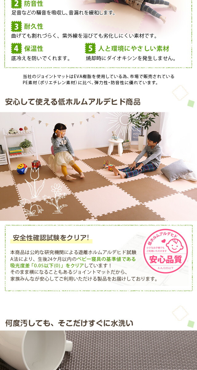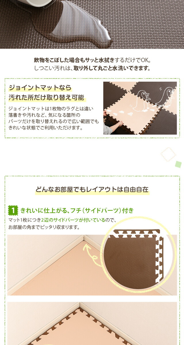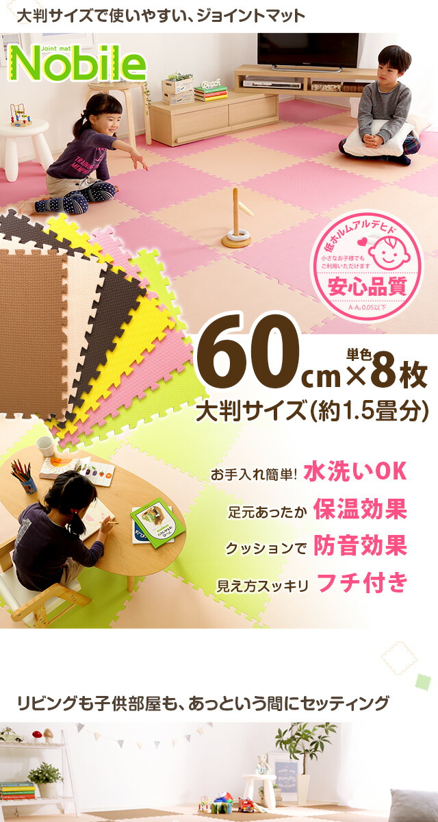 ジョイントマット 8枚セット(大判60cm) サイドパーツ付き 安心の低ホルムアルデヒド 防音 保温 洗える 【Nobile-ノービレ-】 マット カーペット フロアマット 子供 キッズ 赤ちゃん ベビー 【代引不可】[ブラウン]