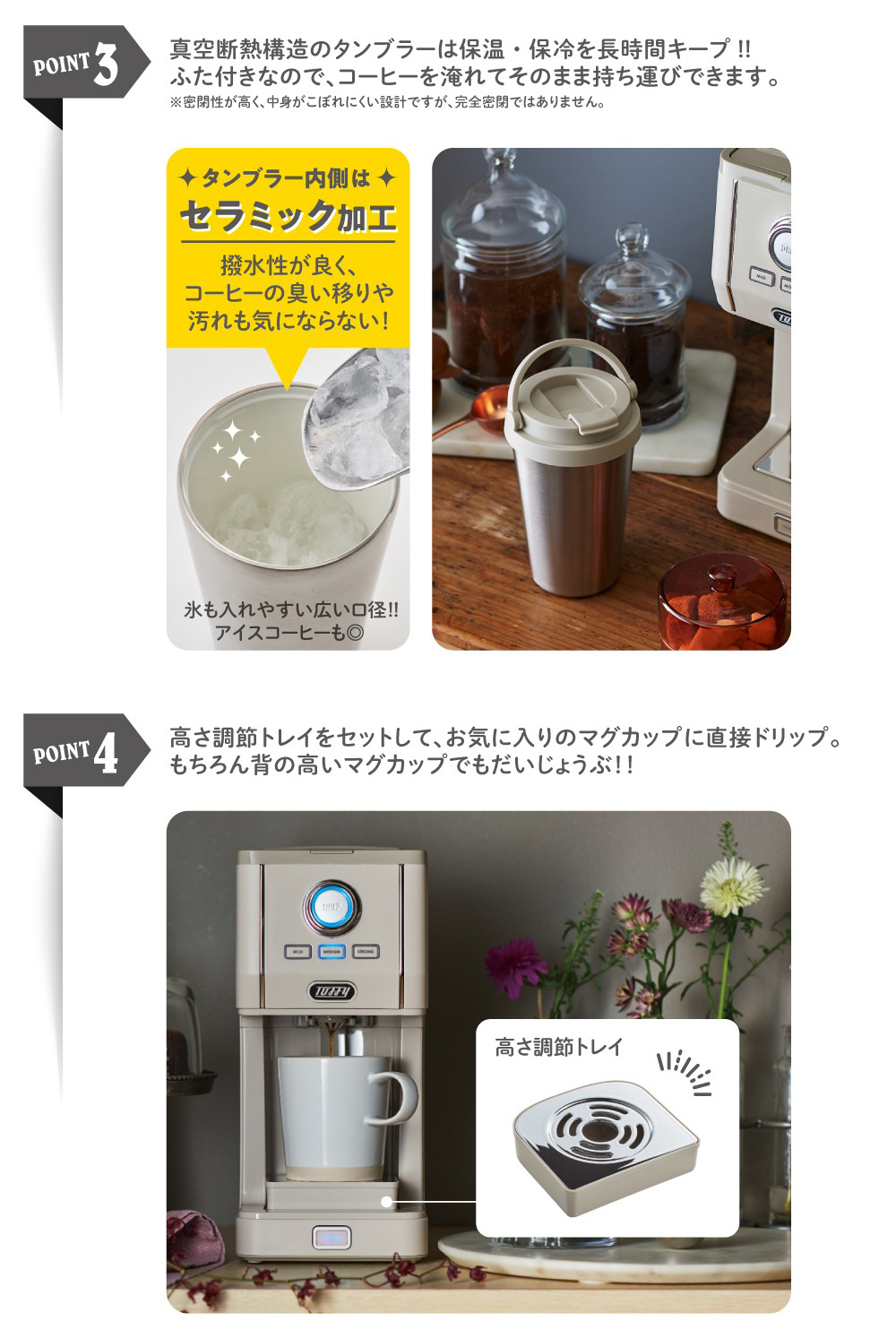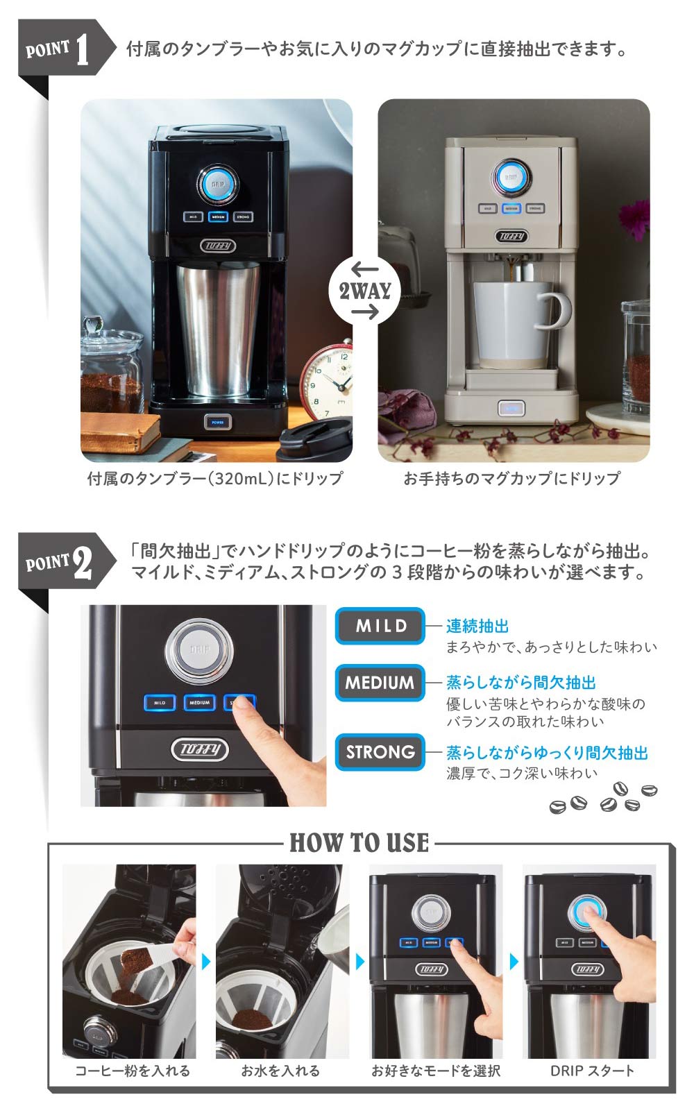 コーヒーメーカー ダイレクトドリップアロマコーヒーメーカー 真空タンブラー付属 ドリップコーヒー ラドンナ Toffy トフィー K-CM12-GE[グレージュ]