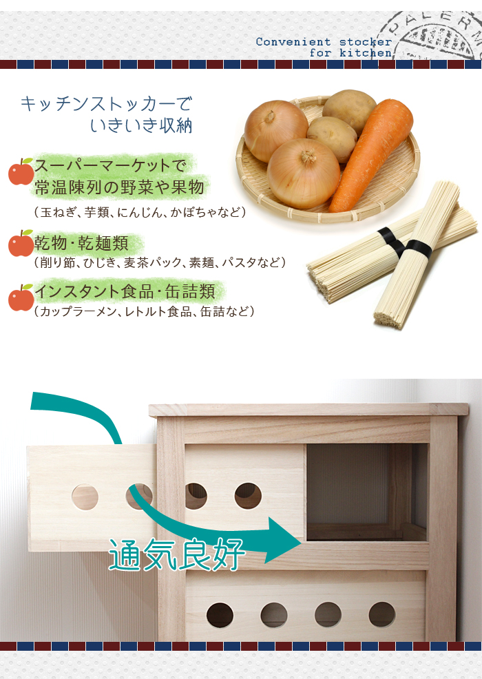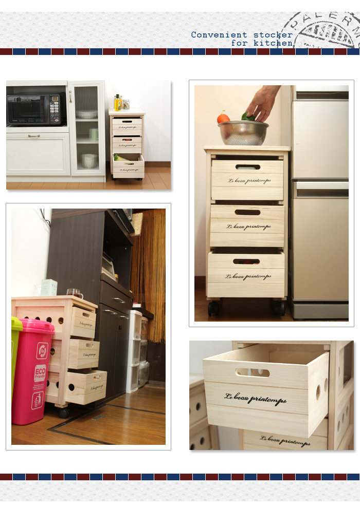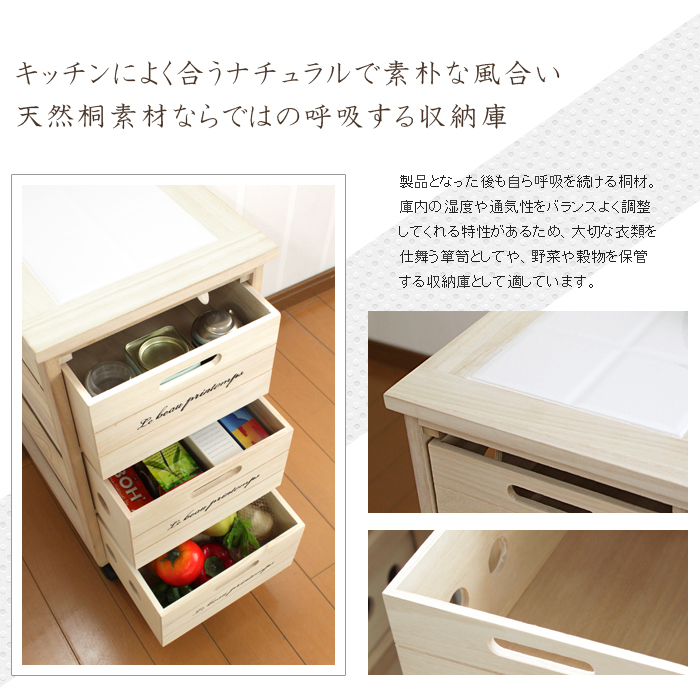 検索キーワード:キッチン 収納 収納家具 おしゃれ ストッカー 野菜ストッカー キッチンラック ラック サイドチェスト シンプル キッチン便利ストッカー 3段 木製 ワゴン キャスター付き キッチンワゴン キッチンストッカー キッチン収納 食品収納 棚 引き出し 天然桐