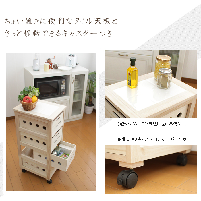 検索キーワード:キッチン 収納 収納家具 おしゃれ ストッカー 野菜ストッカー キッチンラック ラック サイドチェスト シンプル キッチン便利ストッカー 3段 木製 ワゴン キャスター付き キッチンワゴン キッチンストッカー キッチン収納 食品収納 棚 引き出し 天然桐