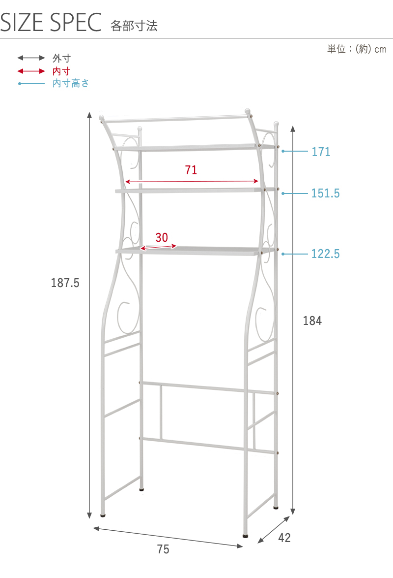 商品サイズ(外寸):(約)幅75×奥行42×高さ187.5cm