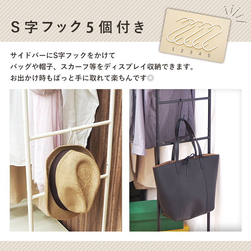 検索キーワード:ハンガー ラック 引き出し サイドバー 棚付き 収納 収納力 S字フック サイド収納 オープン収納 木製 取っ手 部屋 クローゼット