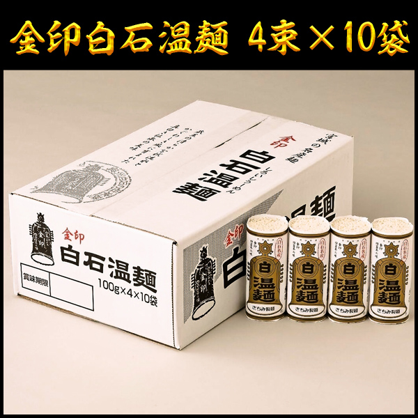 そうめん 金印白石温麺 きちみ製麺 40束(4束×10袋) 上級 素麺 温麺 うーめん 白石うーめん 麺類 ご家庭用 お中元 お歳暮 40食 40人前 乾麺 食べ物 食品 金印 【代引不可】