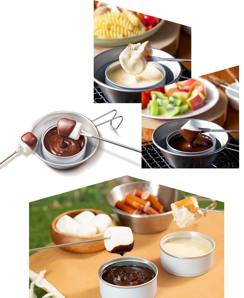 アウトドアでもフォンデュを缶詰で簡単に美味しくお楽しみ頂けます。