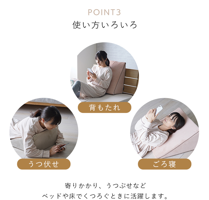 ■寄りかかり、うつぶせ等、ベッドでくつろぐときに便利なアイテムです。