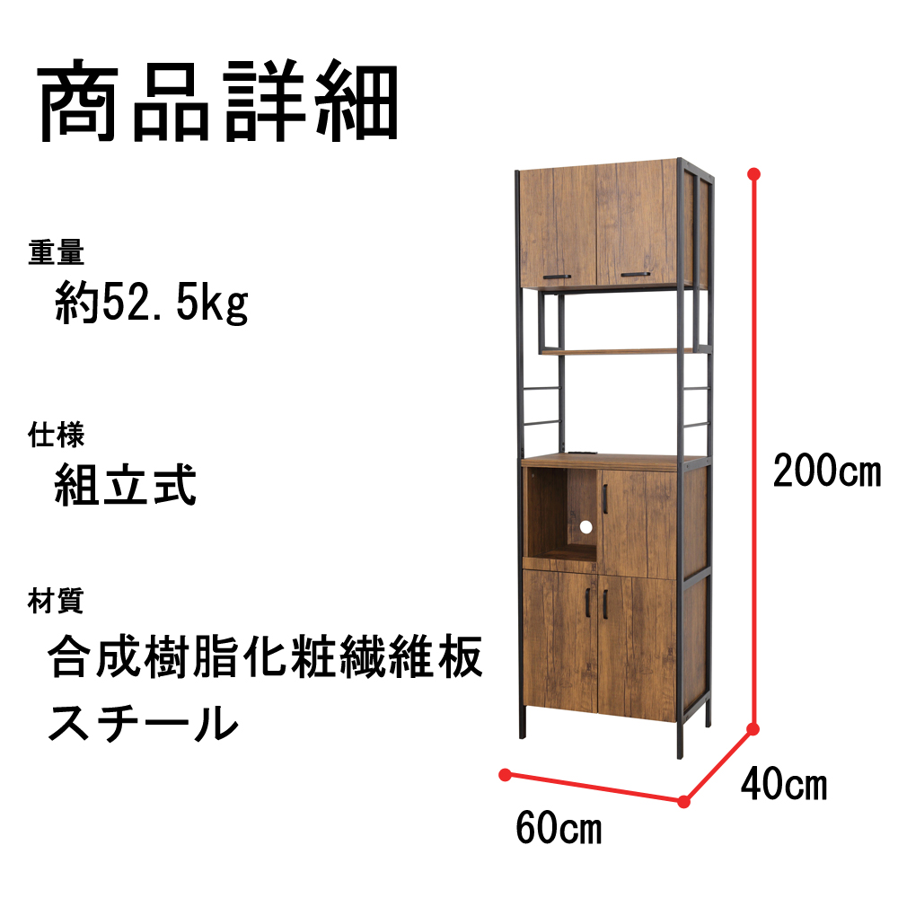 検索キーワード: ヴィンテージ風 スタイリッシュ クロシオ 食器棚 幅60cm 高さ200cm 組立式 組立て スチール 木目調 キャビネット おしゃれ 高級感 キッチン収納 たっぷり 収納 レンジ台 ヴィンテージブラウン モダン エンボス加工 お手入れ簡単 ラク 楽 可動棚付 取っ手付 扉