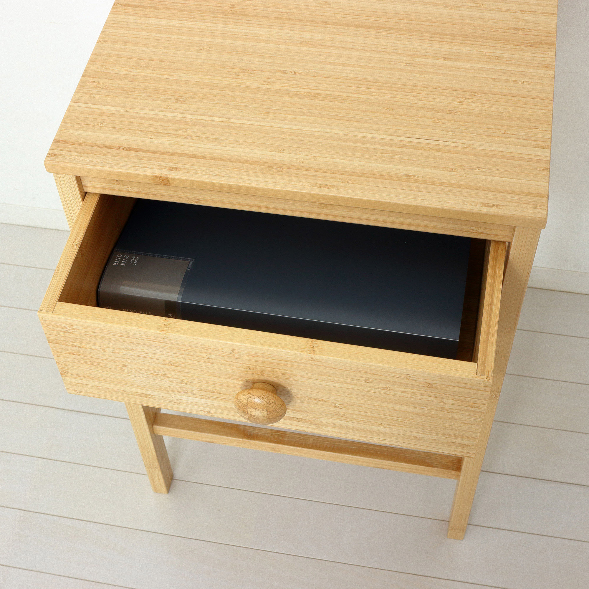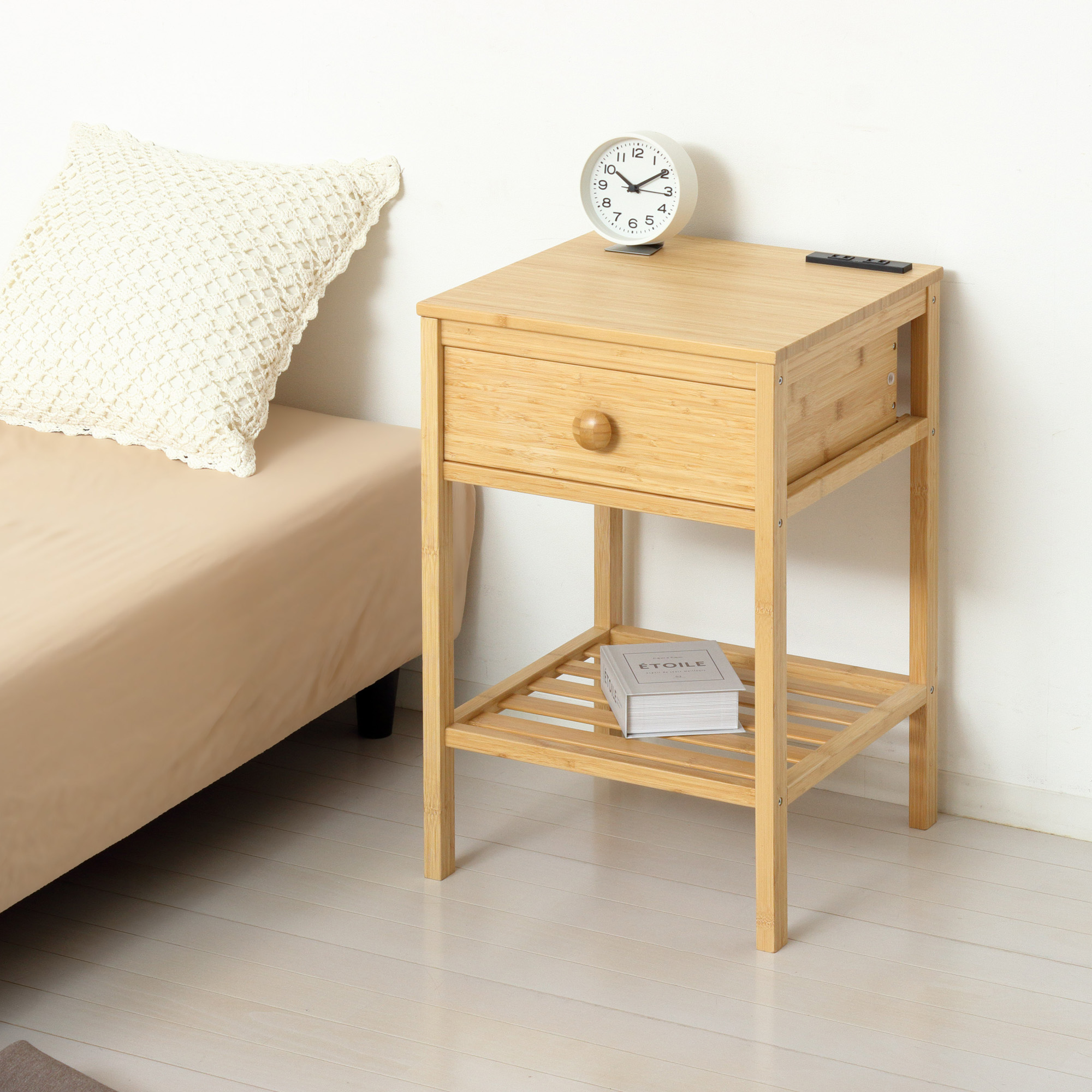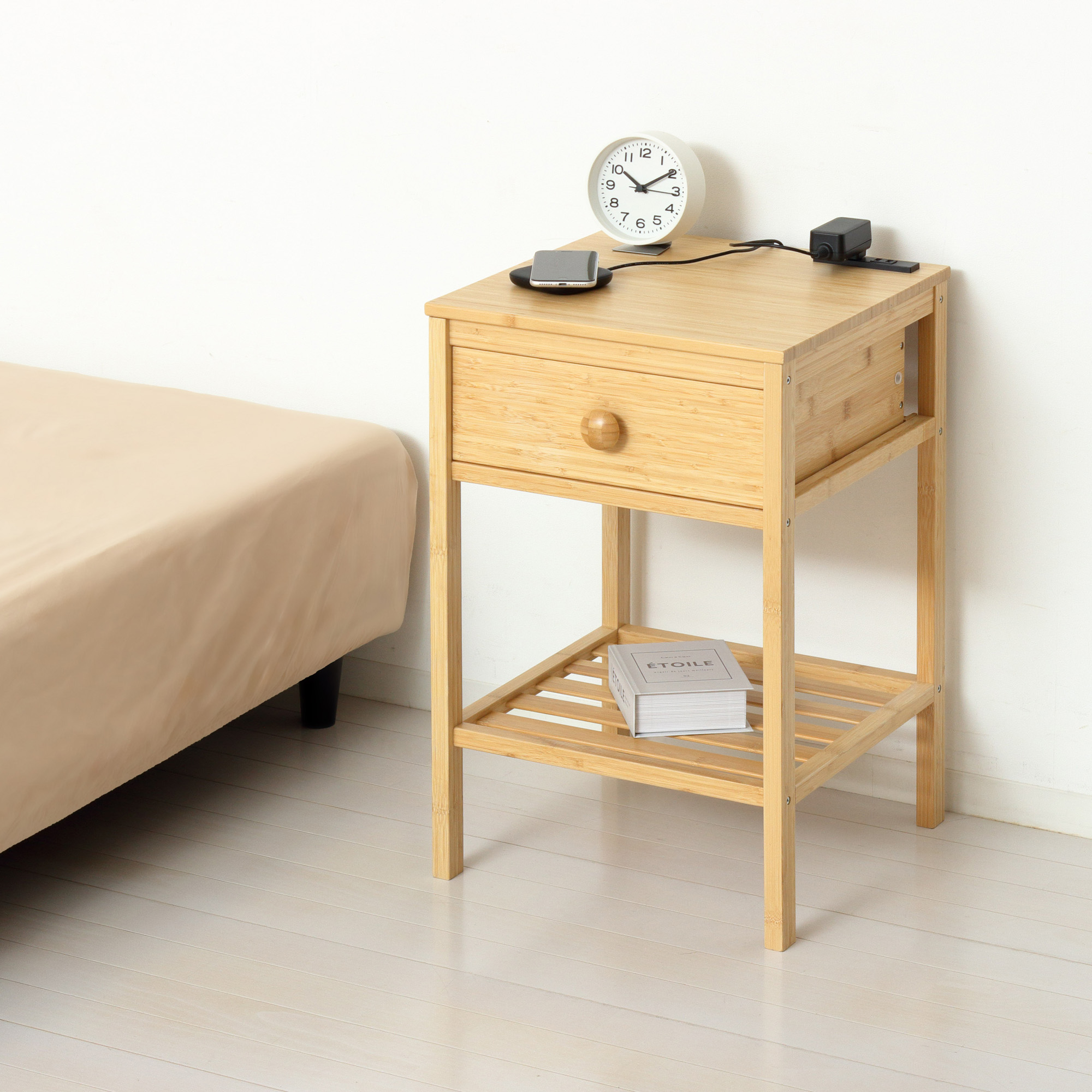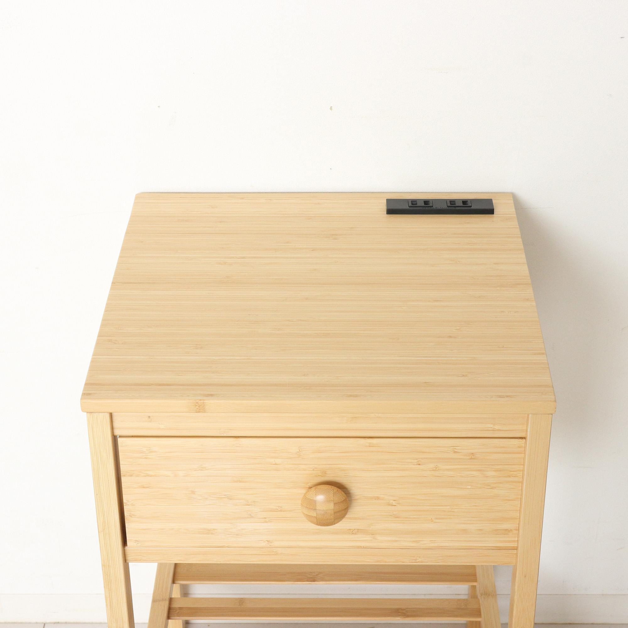 サイドテーブル 竹材 コンセント(1500W)付 A4書類 引き出し付 Bamboo 23561 【代引不可】