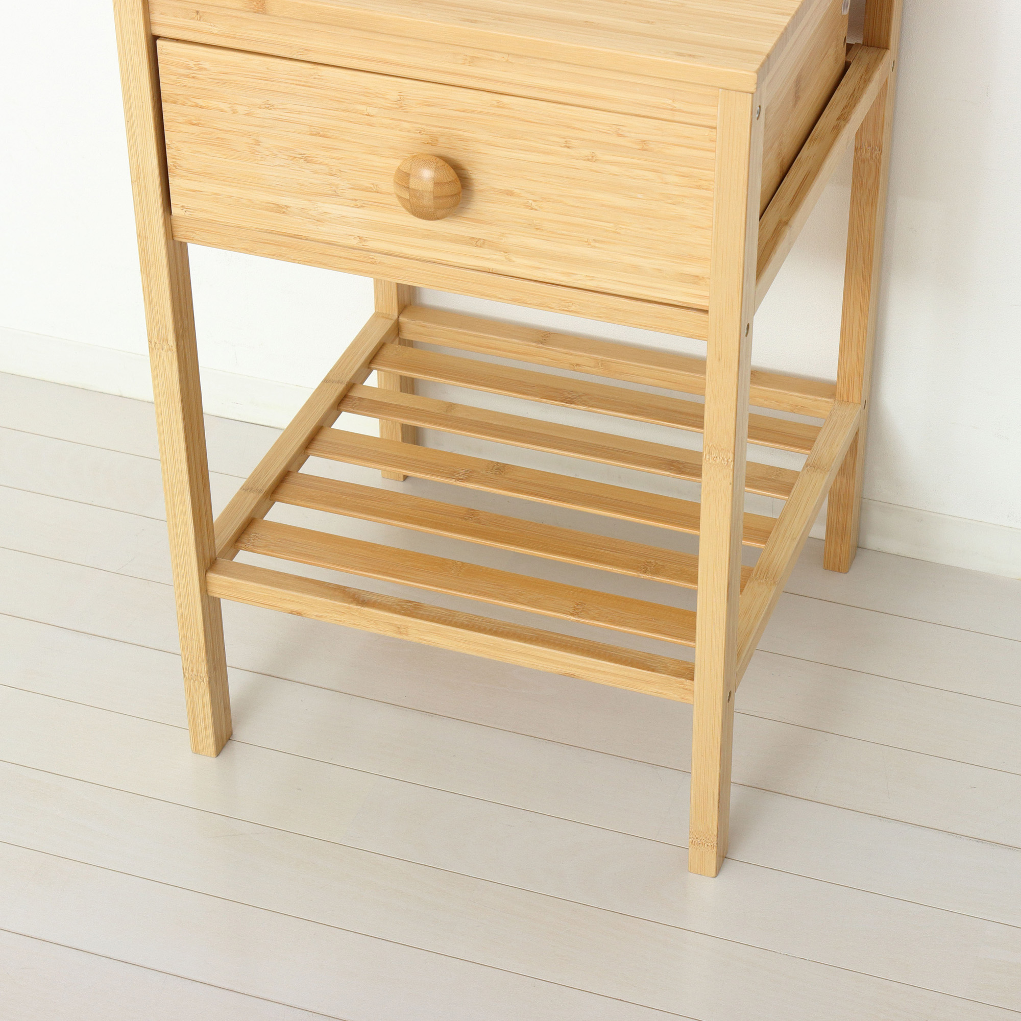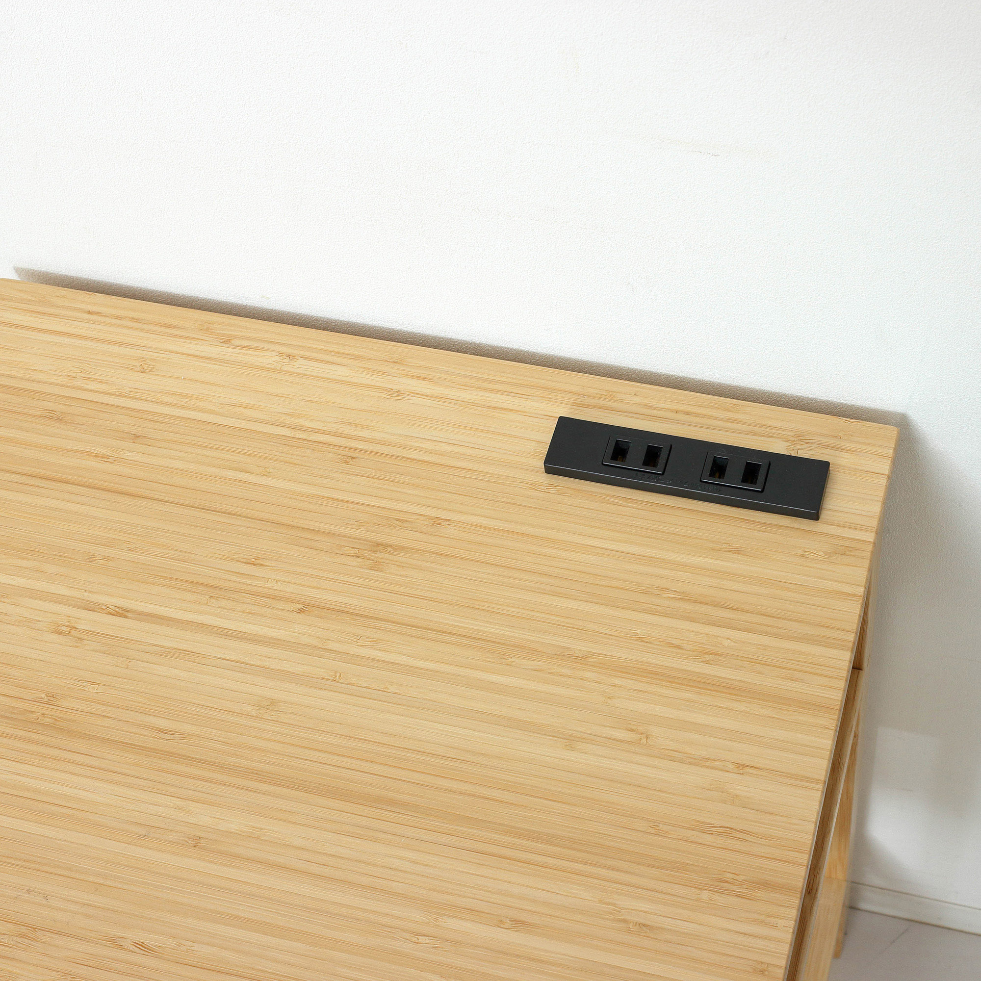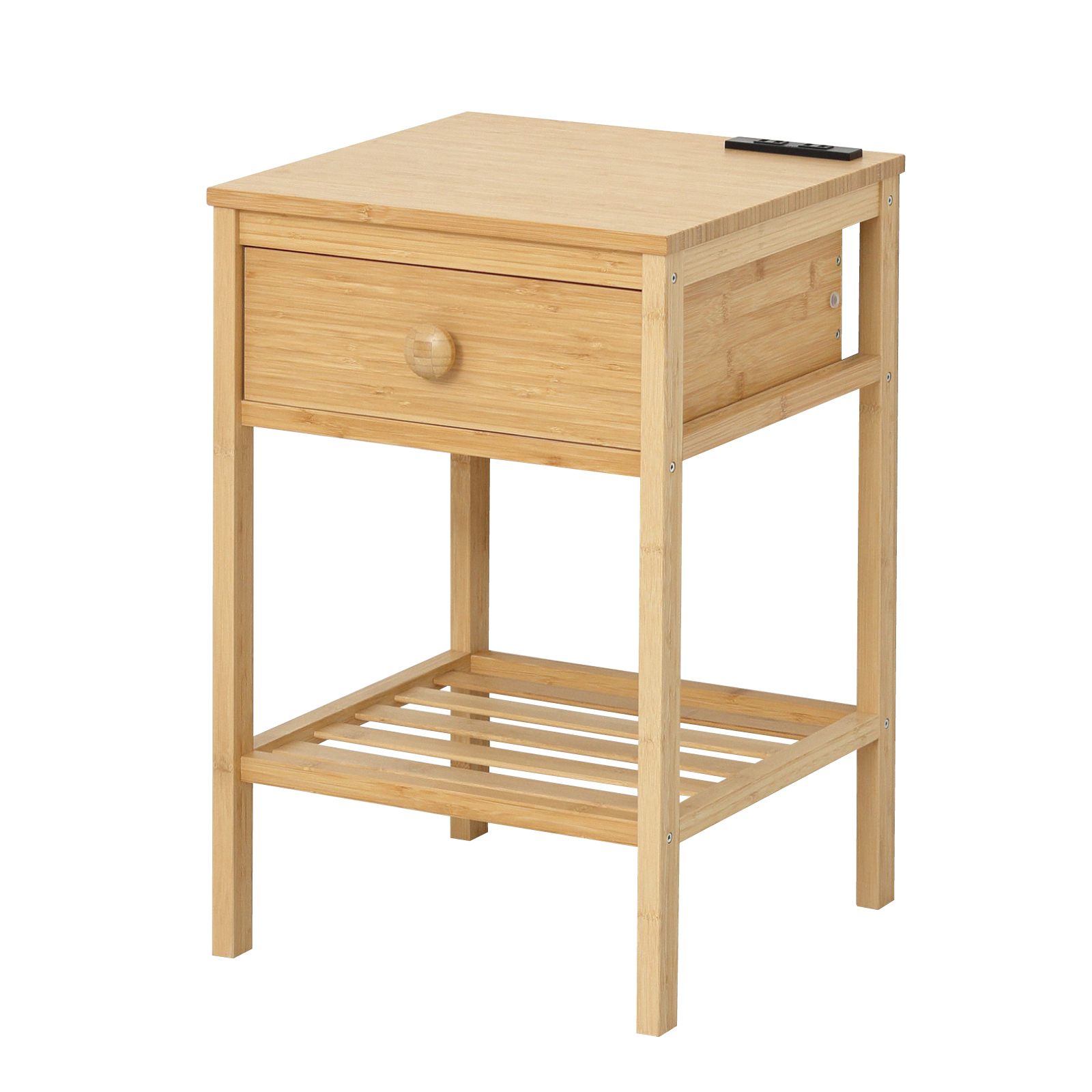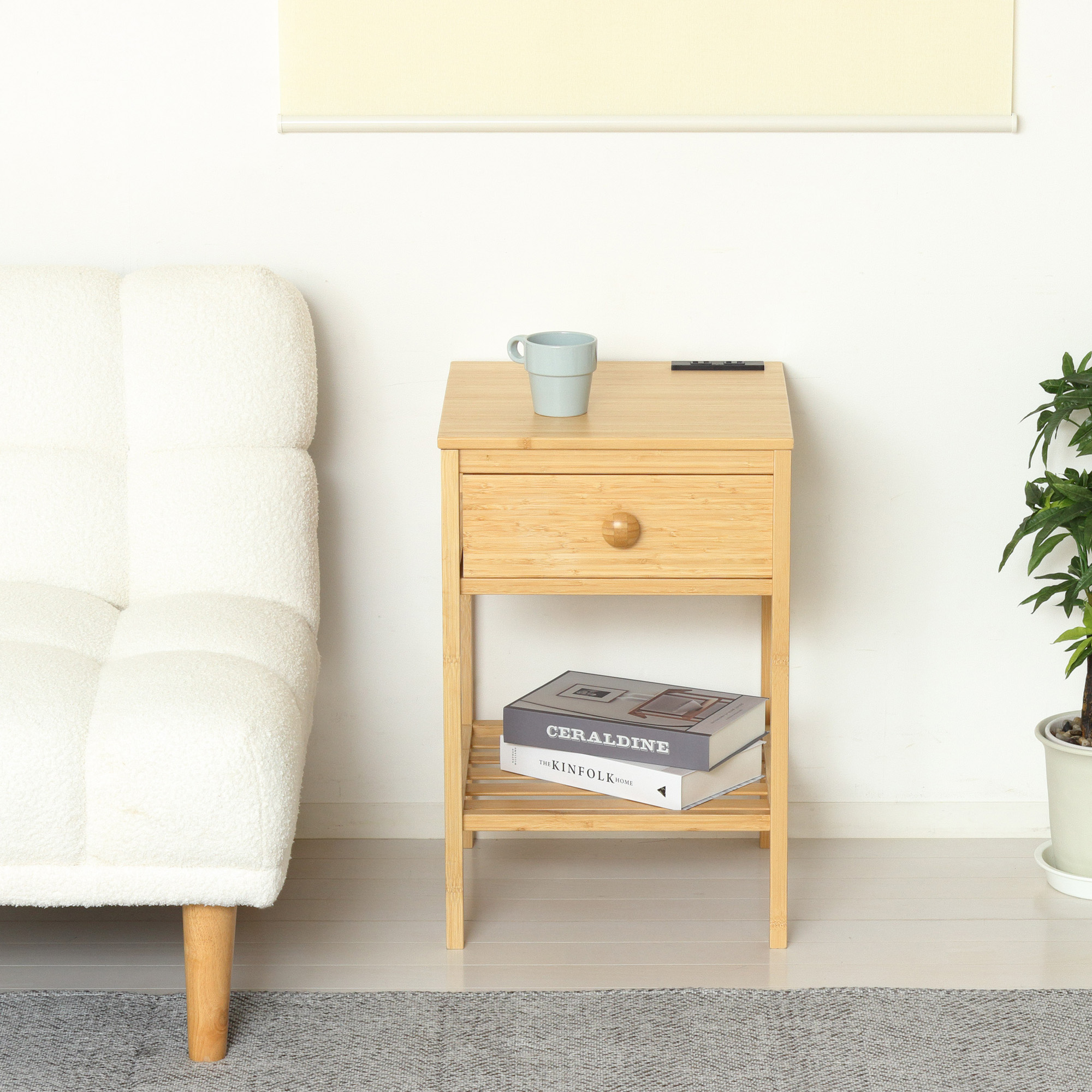 サイドテーブル 竹材 コンセント(1500W)付 A4書類 引き出し付 Bamboo 23561 【代引不可】