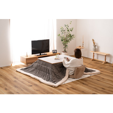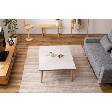 ●大理石調のストーン柄の天板とナチュラルな木目の組み合わせたフラットヒーターコタツ。