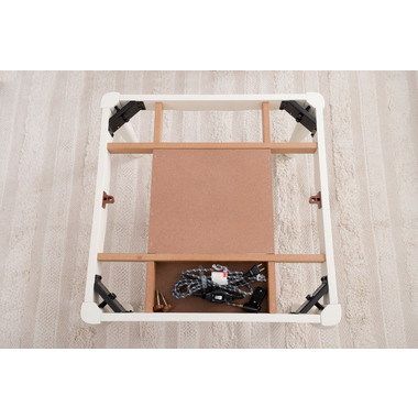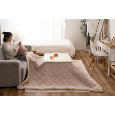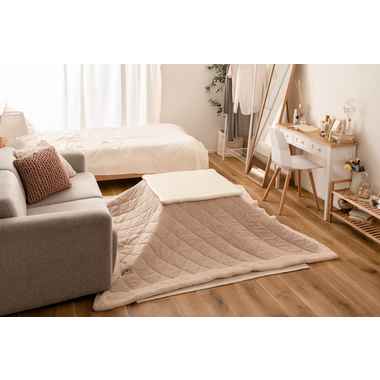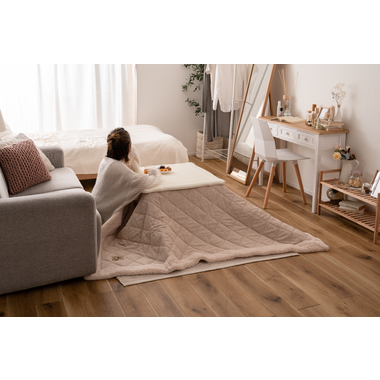 ●ヒーターは天板下の幕板にスッキリと納まる設計となっているので、コタツ感のないオールシーズン使えるテーブル。