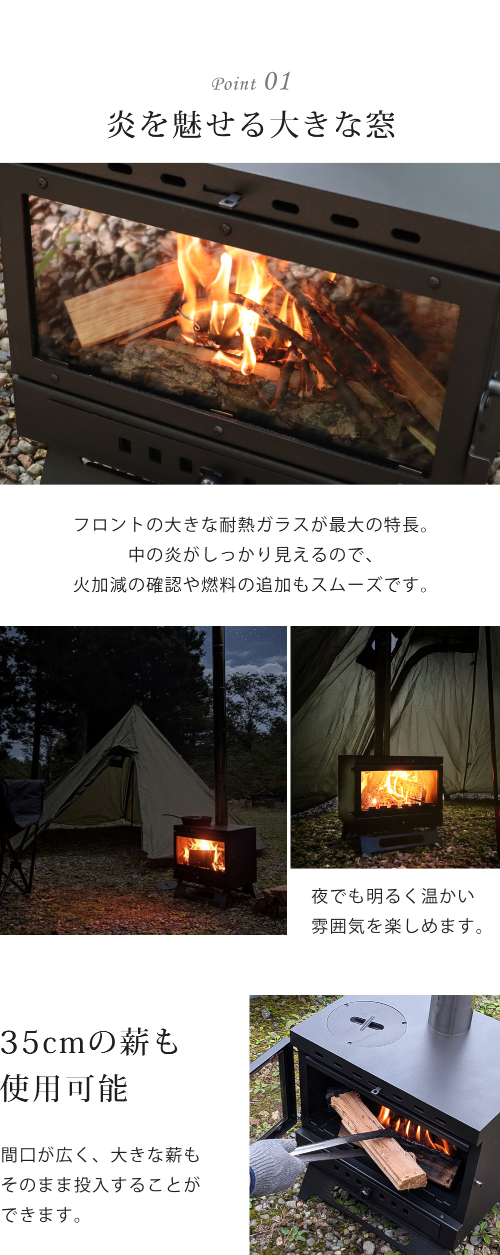 何といってもフロントの大きな耐熱ガラスが特長的!
