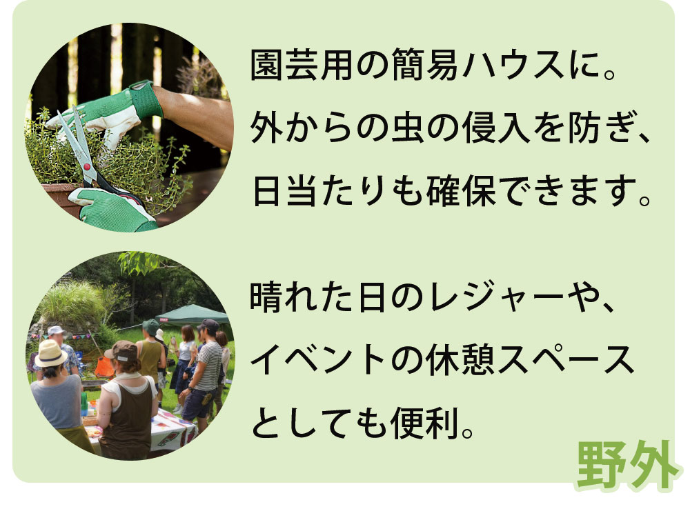 ・園芸用の簡易ハウスに。外からの虫の侵入を防ぎ、日当たりも確保できます。