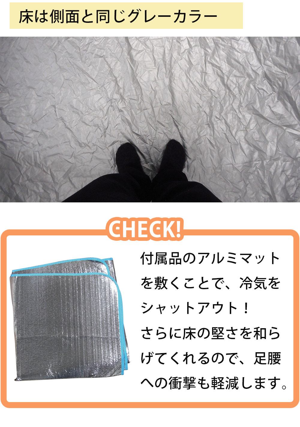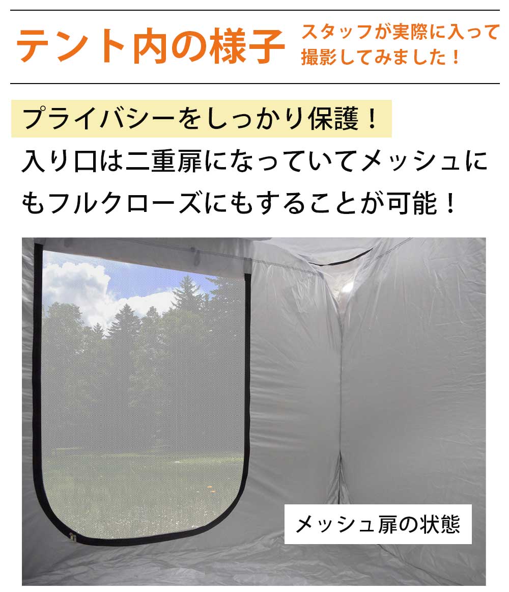 最大4人まで入る大型テント。家族や少人数のグループでひろびろと使用できます。