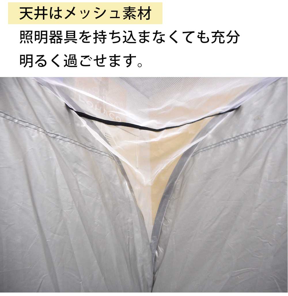 天井部と扉にはメッシュ生地を使用。通気性が良く、長時間使用しても空気がこもらず、快適です。