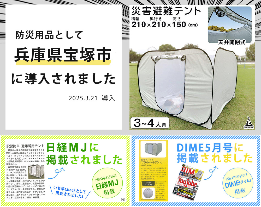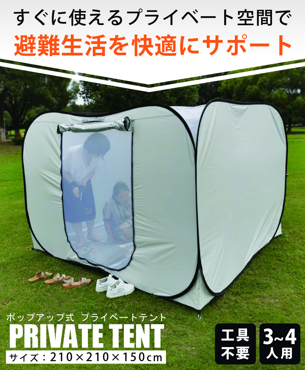 プライベートテント 防災テント ワンタッチ 3~4人用 天井が開く 災害用 避難用 避難テント 防災 テント 間仕切り 着替えテント 着替え用テント 防災グッズ アウトドア ファミリー 大型 プライバシーテント 防風 Landfield
