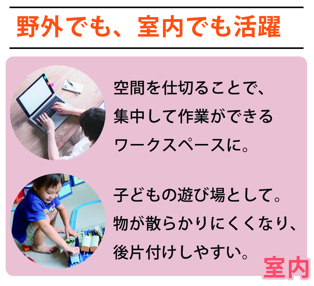 ・子どもの遊び場として。物が散らかりにくくなり、後片付けしやすい。