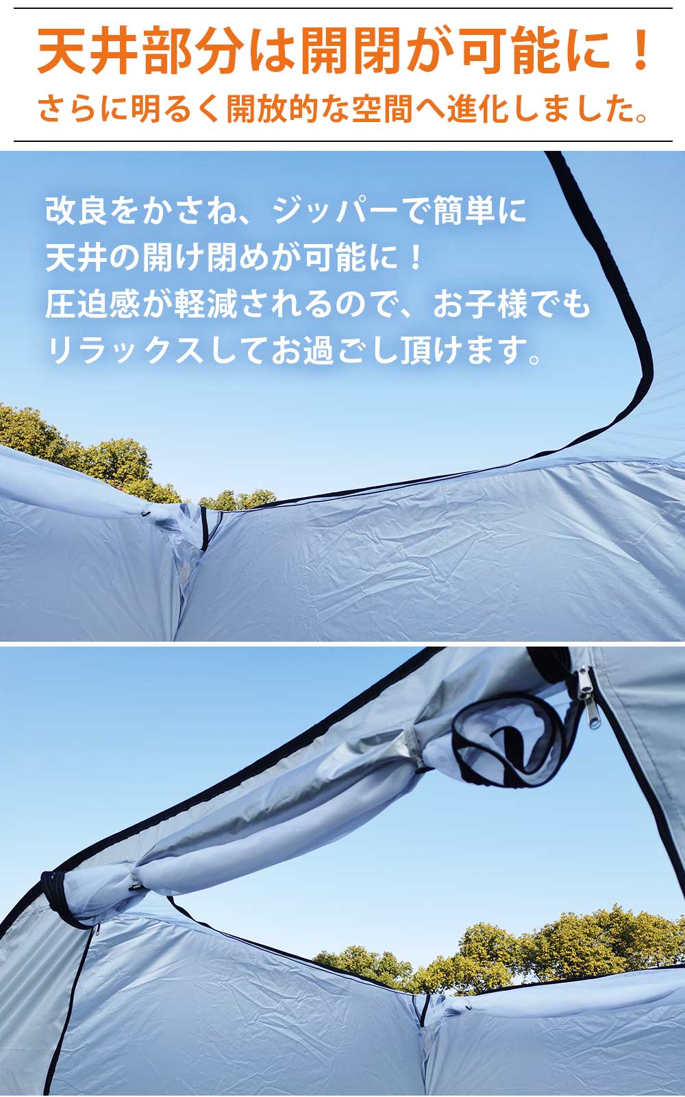 改良を重ねた結果、簡単に天井の開け閉めができるジッパーを装着しました!