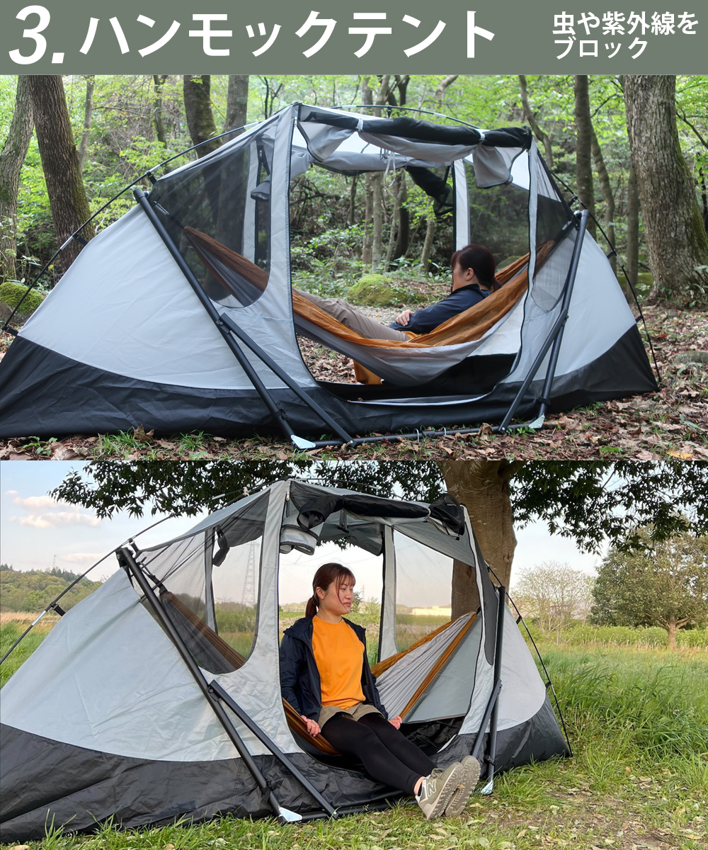 ハンモックとテントが合体!1台4役の「スマート・ハンテック」