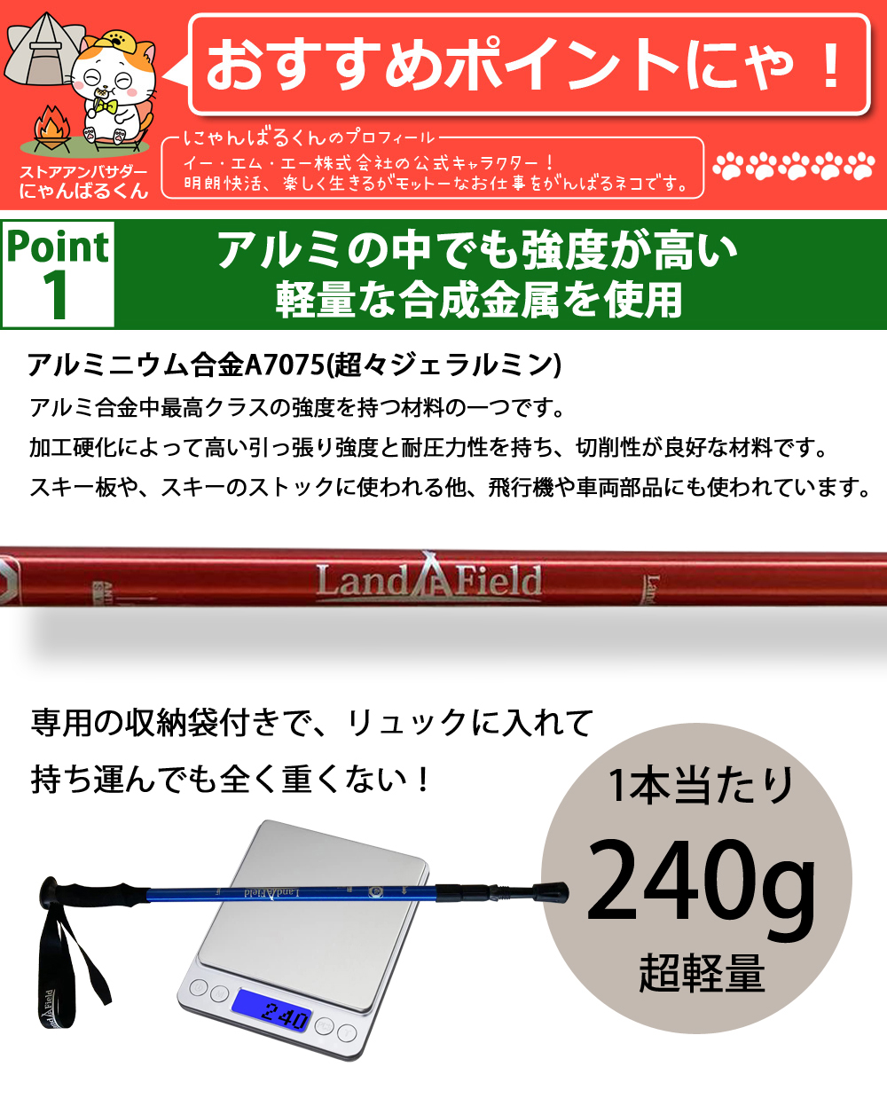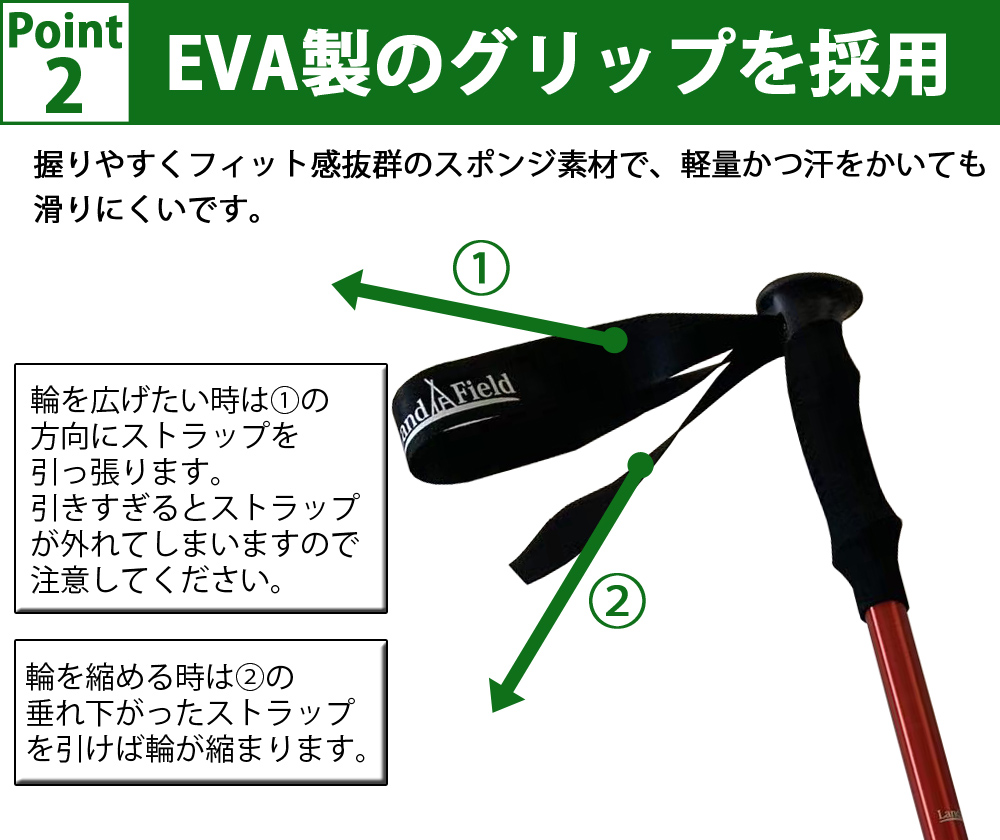 LandFieldの伸縮式トレッキングポールは、ハイキング、トレッキング、バックパッキング、ウォーキング、登山、雪道歩き、などのあらゆる冒険・旅行の心強いお供になります。
