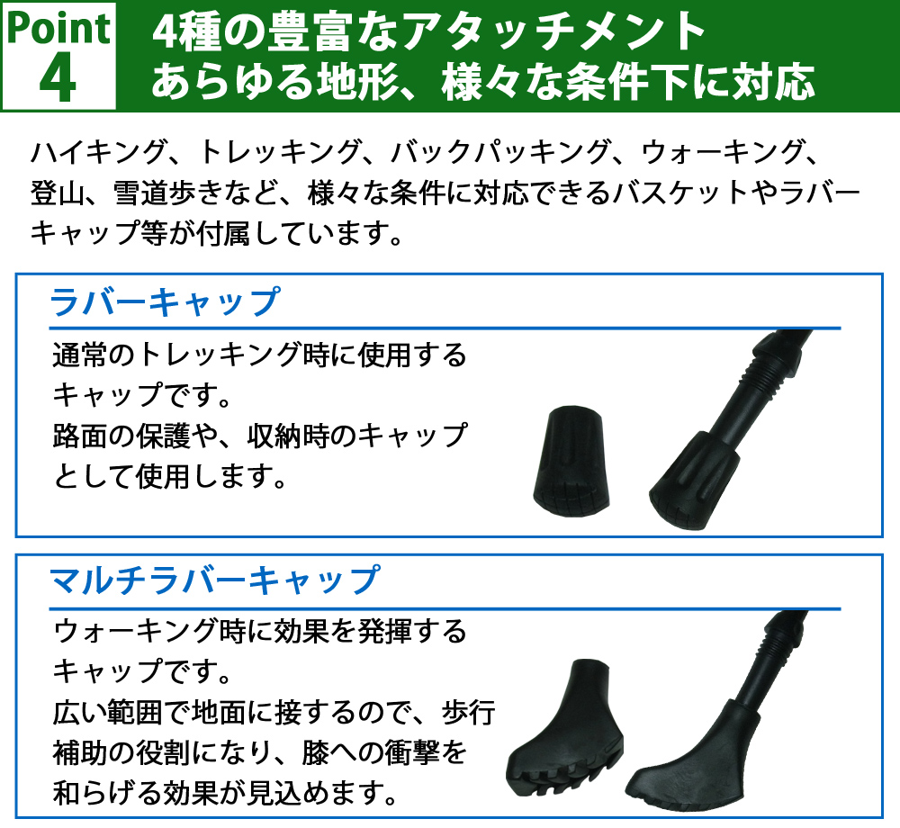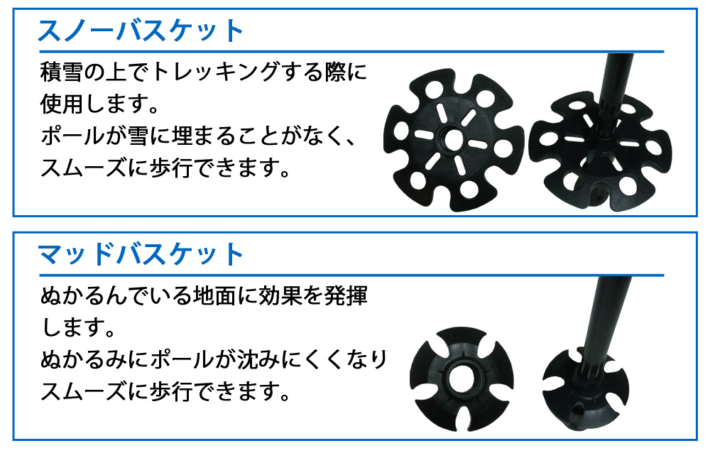 ぬかるみにポールが沈みにくくなりスムーズに歩行できます。