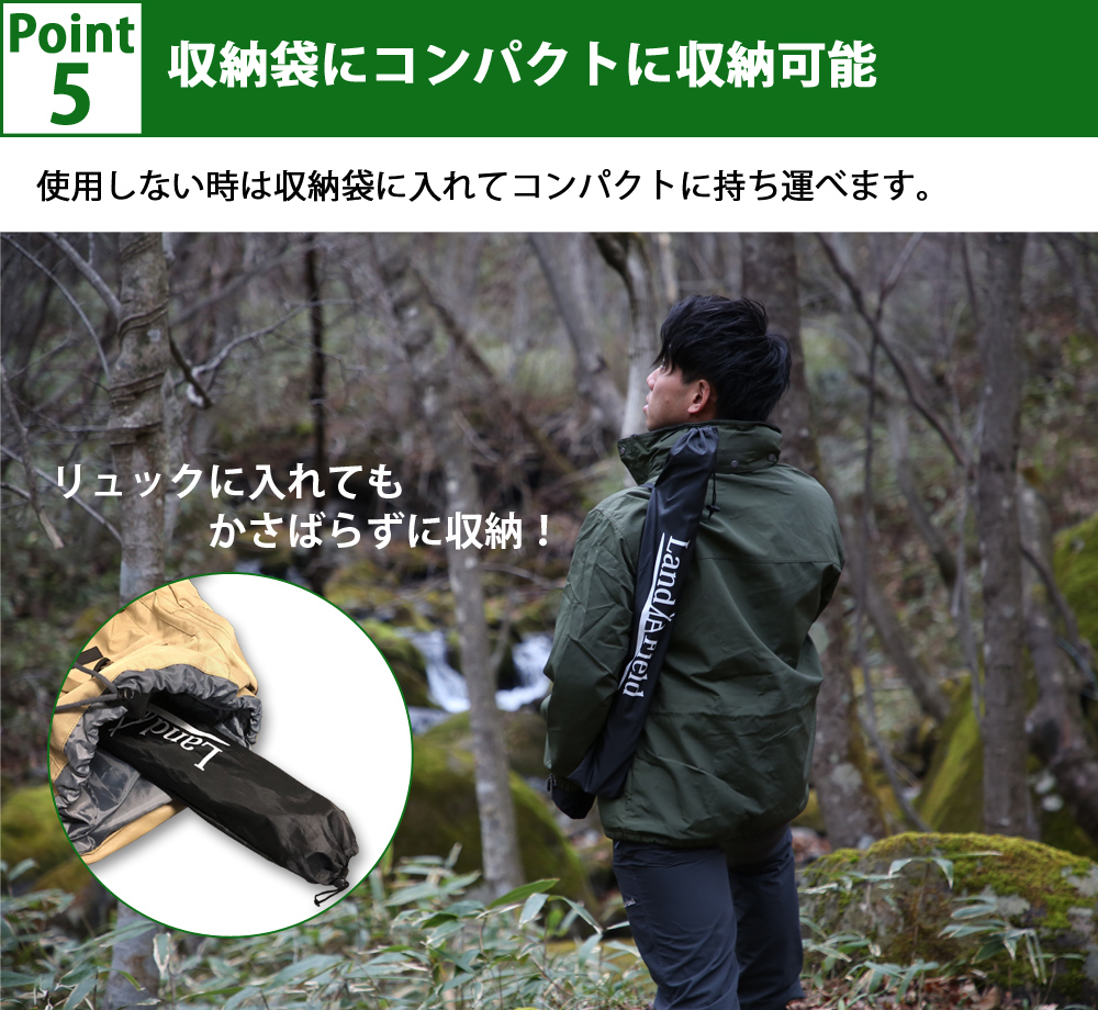 使用しない時は収納袋に入れてコンパクトに持ち運べます。