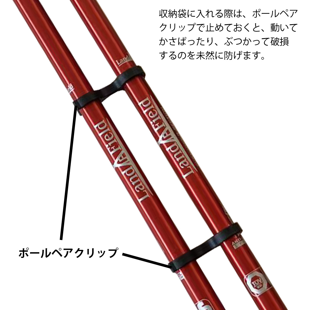 収納袋に入れる際は、ポールペアクリップで止めておくと、動いてかさばったり、ぶつかって破損するのを未然に防げます。