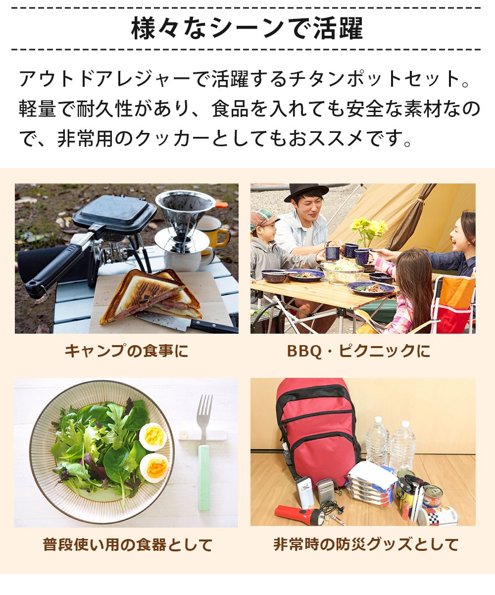 ※本商品は「チタン製ポットセット」のみです。画像内で使用しているその他のアイテムは付属いたしません。