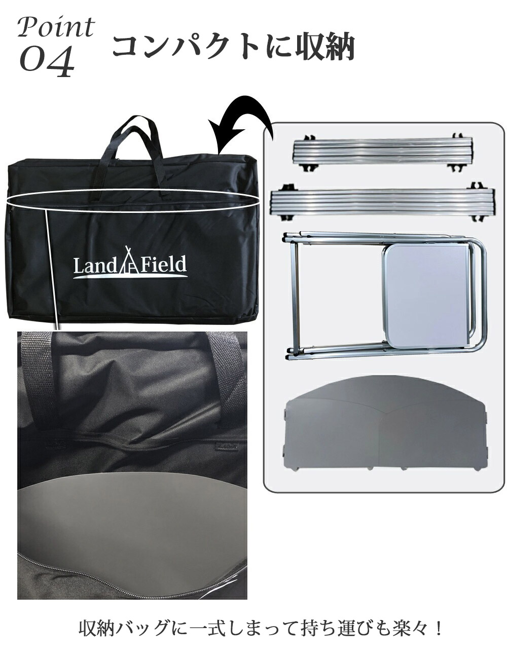 メイン天板やラック天板は取り付け・取り外すタイプですが、収納バッグに入れておけば、まとめられてかさばらずに収納・運搬が可能です。
