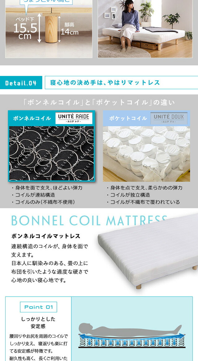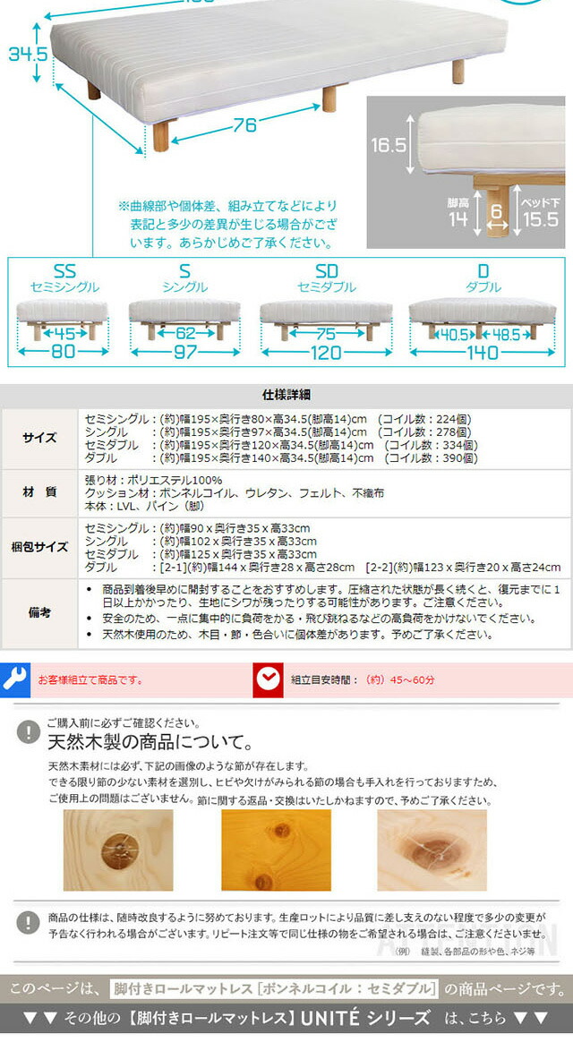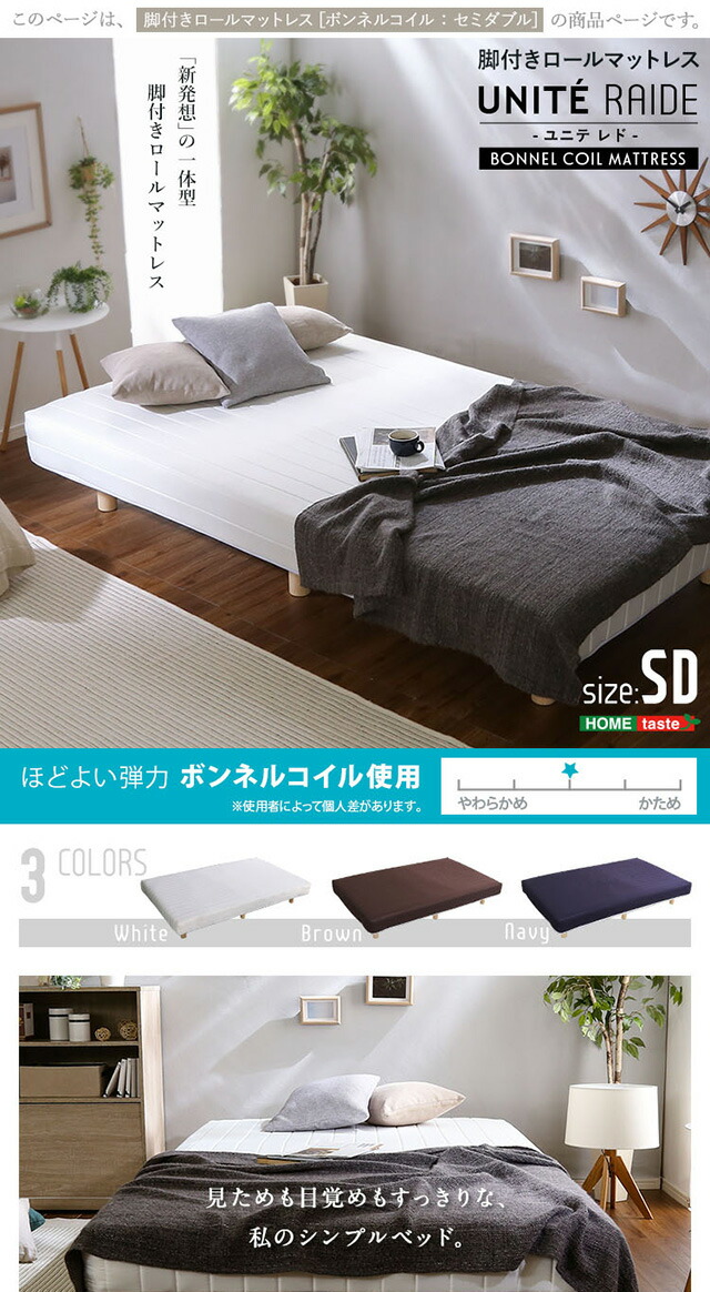 新発想で搬入も組立カンタン! ほどよい弾力 脚付きロールマットレス(ボンネルコイルスプリング)Unite -Raide- -ユニテ・ライド- セミダブルサイズ 組説簡単 ロールマットレス ベッドセット マットレスセット 代引/同梱不可[ネイビー]