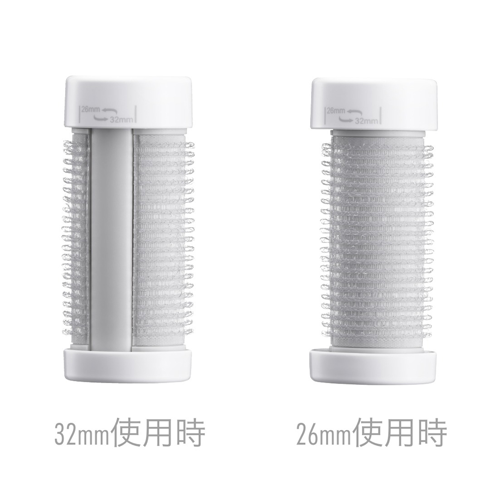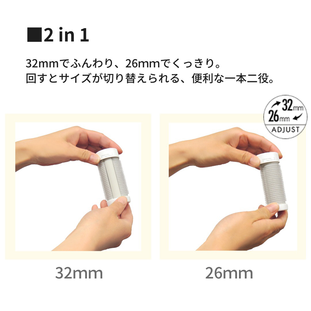 32mm でふんわり、26mm でくっきり。 回すとサイズが切り替えられる、便利な一本二役。