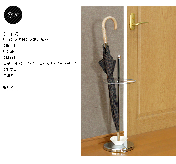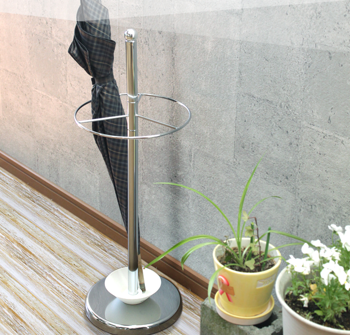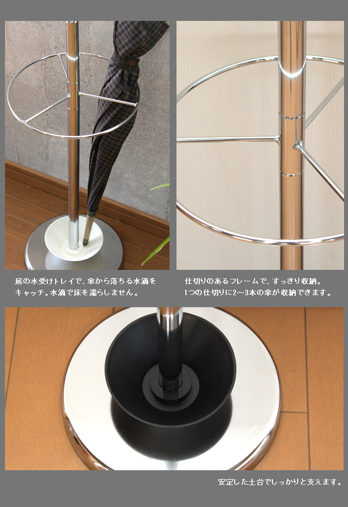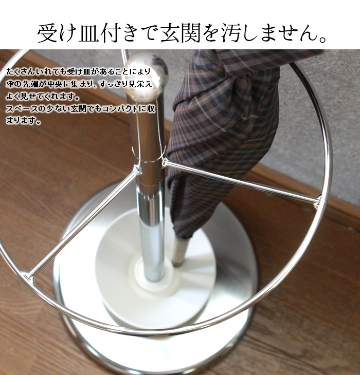 屋内外どちらにも置くことができ、受け皿付でぬれた傘の水滴で玄関を汚しません